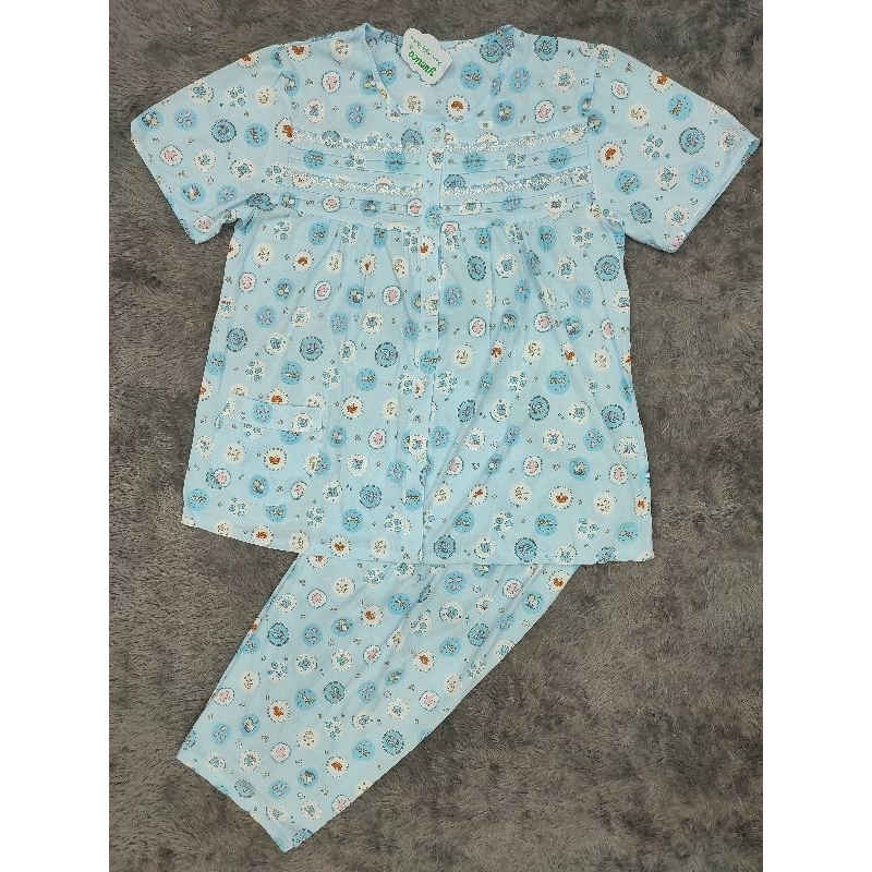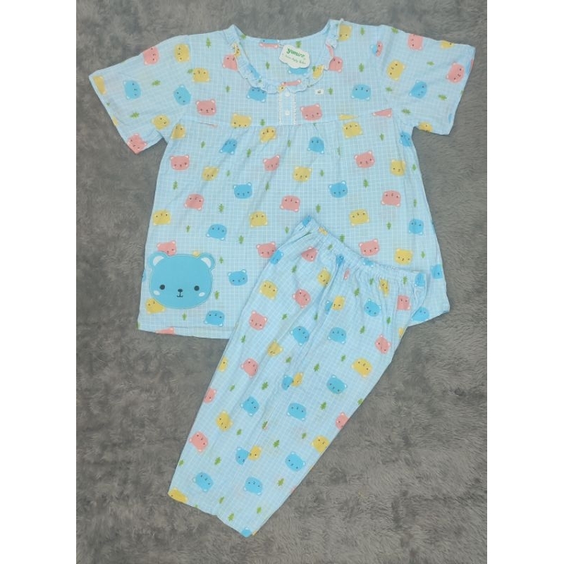 Yumico XL setelan baju tidur bahan kaos tangan pendek celana 7/8 xl