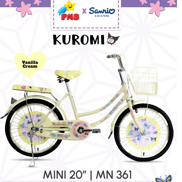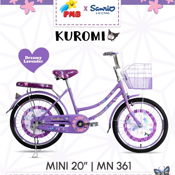 Sepeda Anak Cewek Mini Bmx Pmb Kuromi Ukuran 20 Inch Sepeda anak Perempuan Kuromi