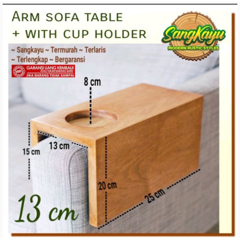 Arm sofa table Coffee table + cup holder 13 cm meja saji sofa lengan