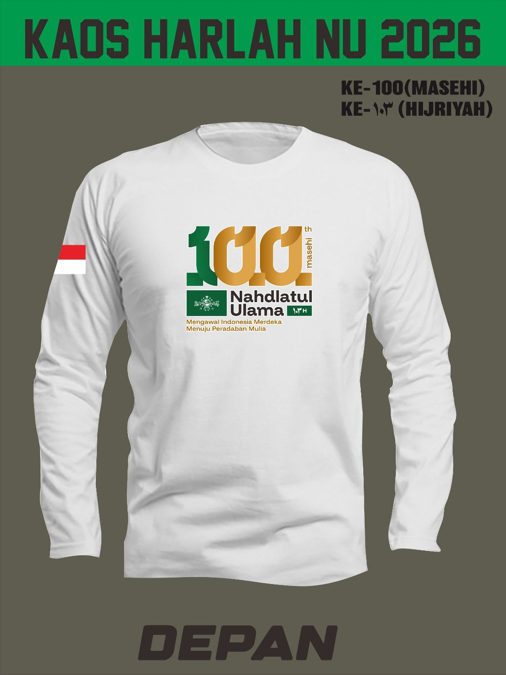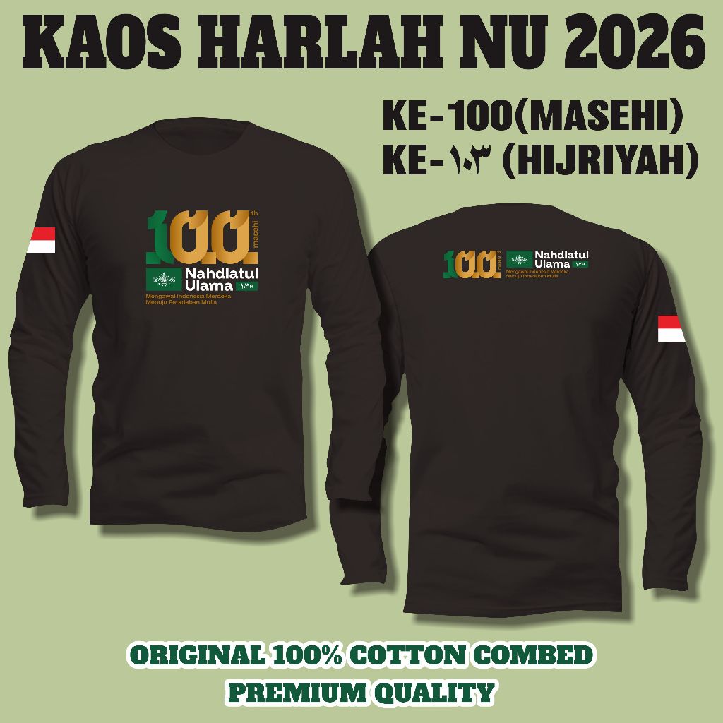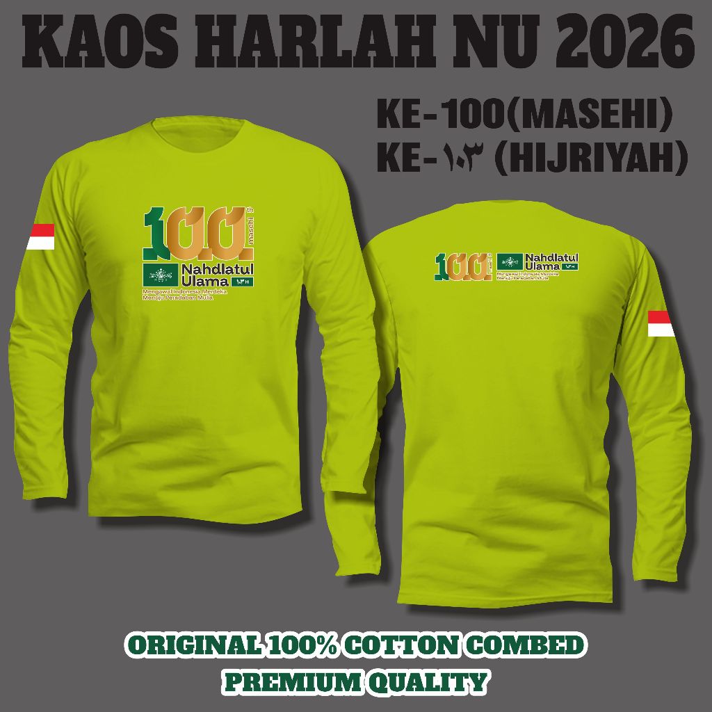 KAOS LOGO HARLAH NU 2026 (lengan PANJANG) || 100 tahun Masehi NU || 103 tahun Hijriyah NU