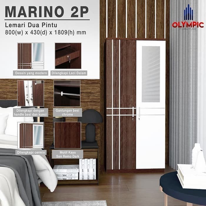 Lemari Pakaian Pintu 2 Olympic Marino