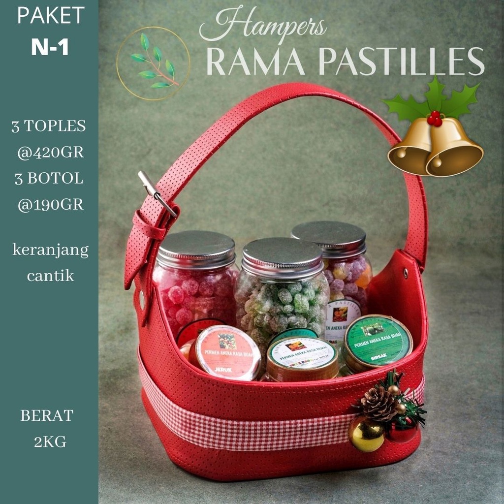 Hampers Natal Isi Permen Rasa Kayu Putih Jahe Buah Kemasan Botol 400 g Isi 3 pc dan Botol 175 g Isi 3 pc Rama Pastilles