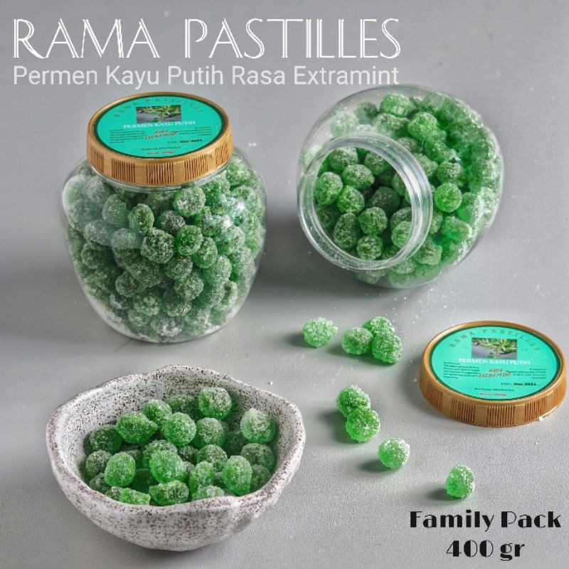 Permen Rasa Kayu Putih Ekstramint dan Original Kemasan Toples 400 gram Permen Mint Manis Rama Pastilles