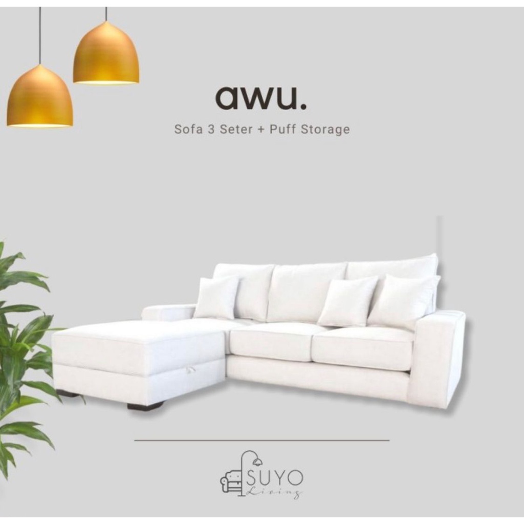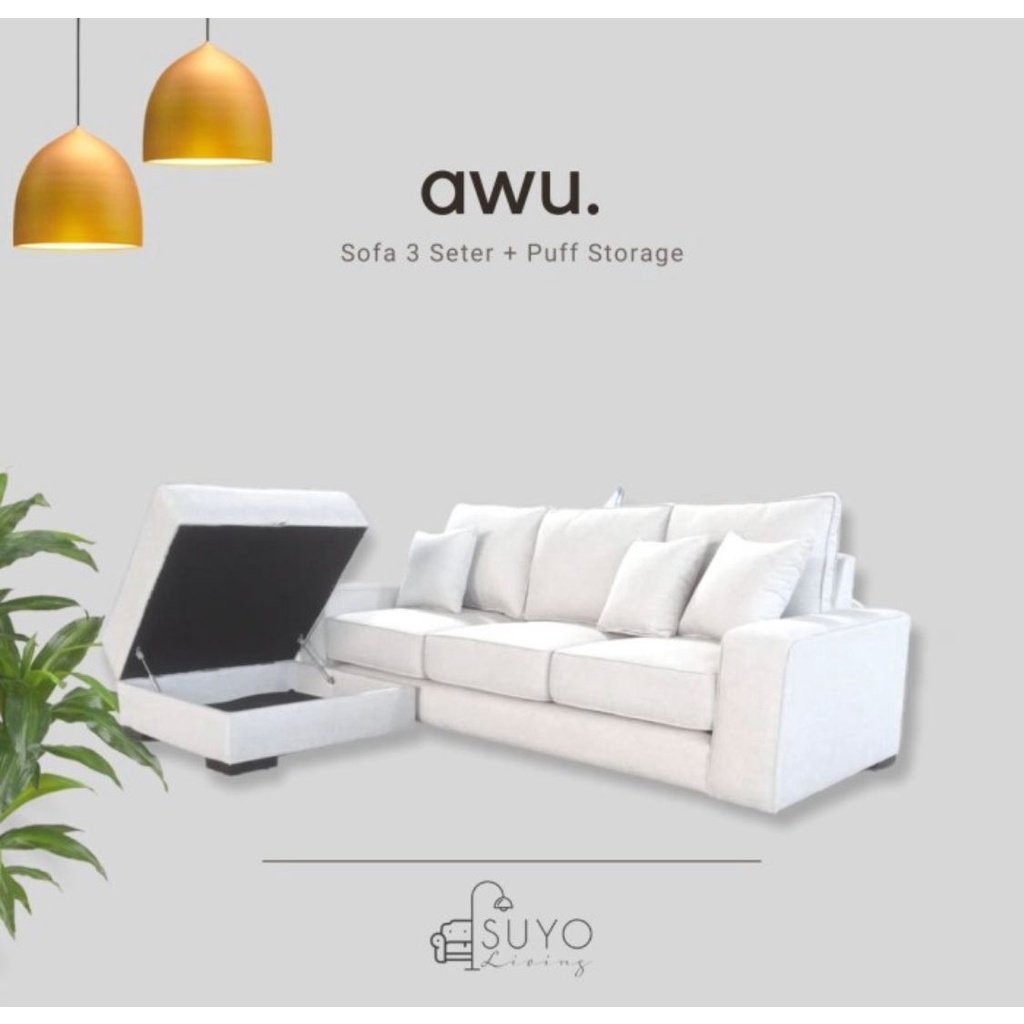 AWU - Sofa 3 Seater + Puff - Suyo Living FREE ONGKIR JABODETABEK