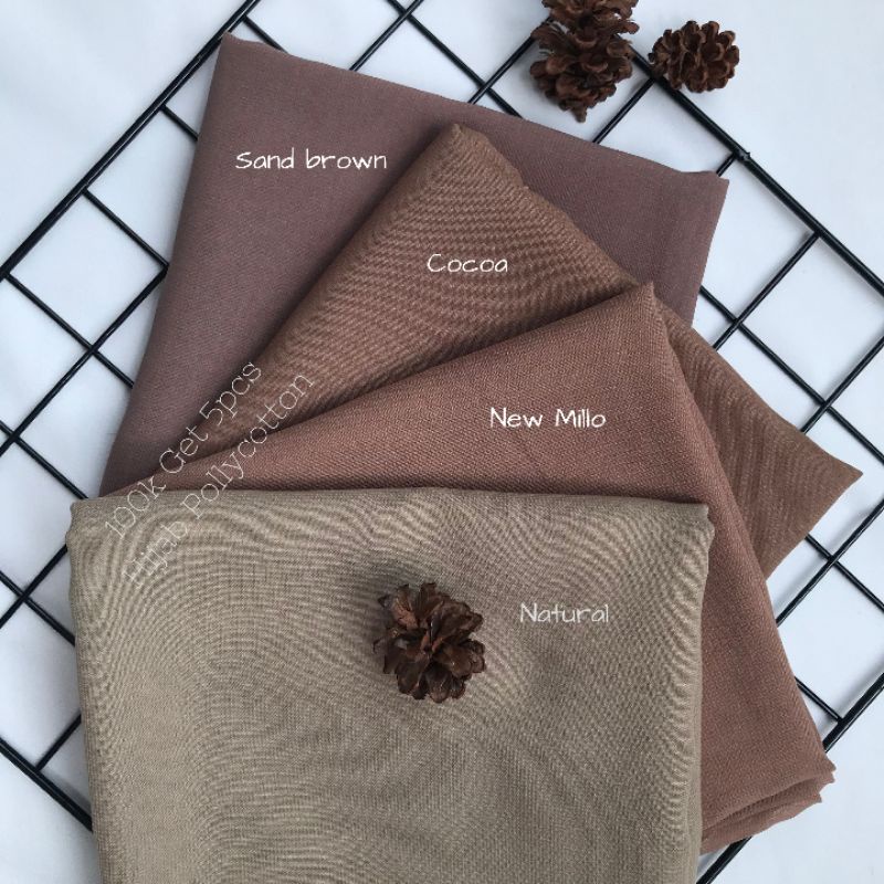 Hijab Pollycoton Hijab Square ( Natural, New millo, Cocoa, Sand brown )