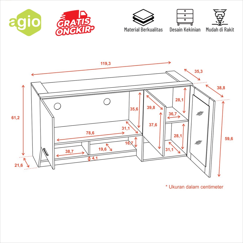 Oggi - Lemari Dinding Dapur / Kitchen Set 3 Pintu Minimalis / Rak Atas Dapur / Rak Dinding Dapur / Lemari Kabinet Dapur / Agio Rea Kitchen Wall 3D