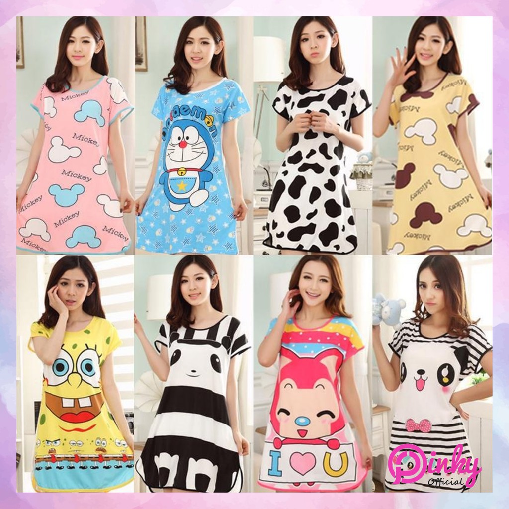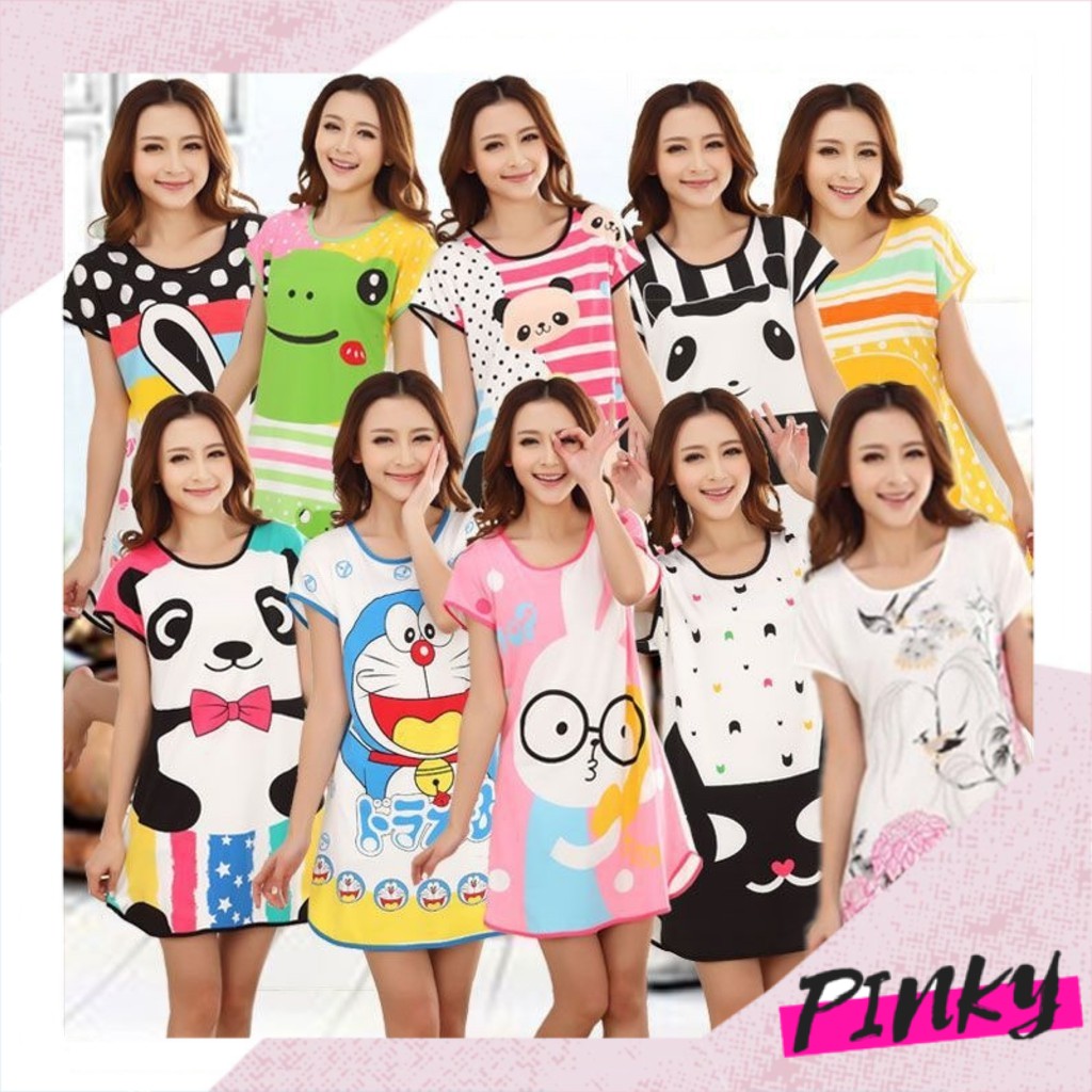 Pinky Pakaian Wanita Baju Tidur Wanita Import Daster Motif Kartun Longgar Korea Fit to XXL 4016