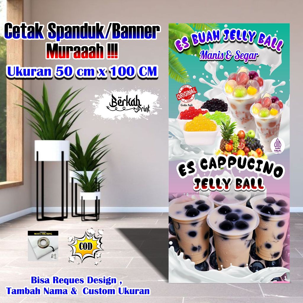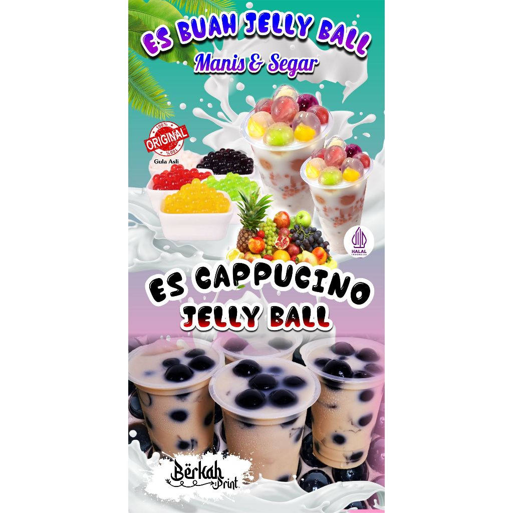 Spanduk Banner Es Jelly Ball & Cappucino Ball Ukuran 50 cm x 10 cm