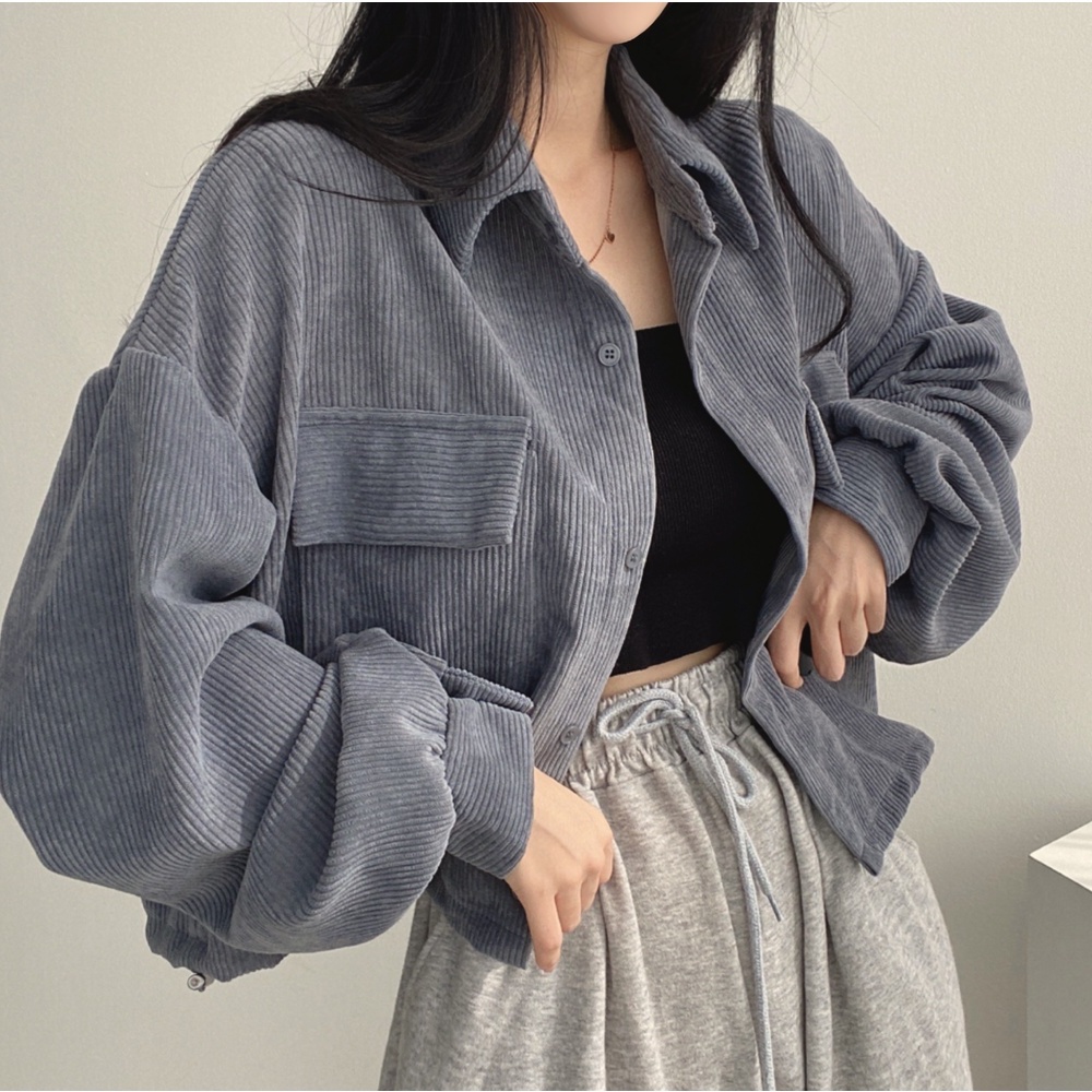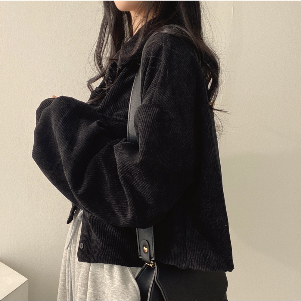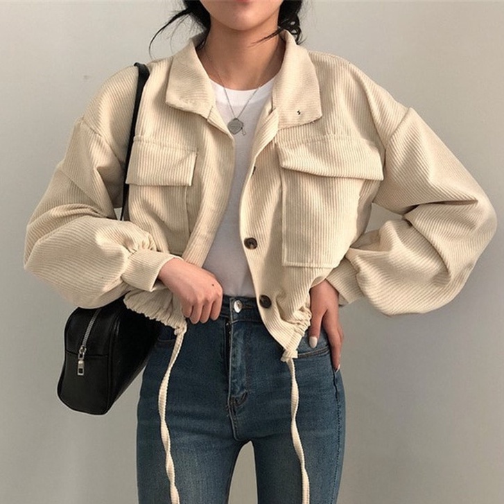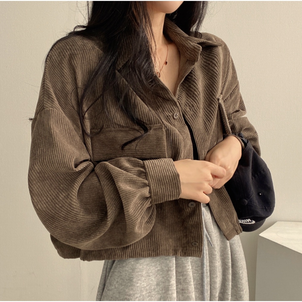 jaket korduroi pendek retro wanita warna solid atasan korea style