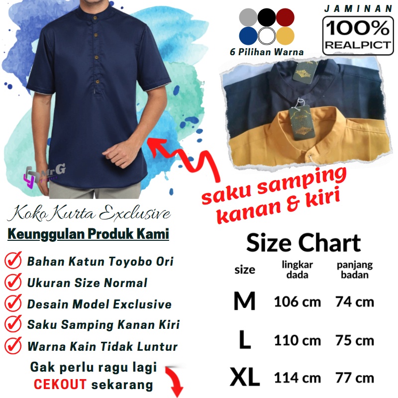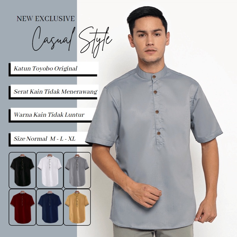 Baju Koko Pria Dewasa Koko Kurta Taqwa Pakaian Muslim Lengan Pendek Matt Katun Adem Tebal Terlaris