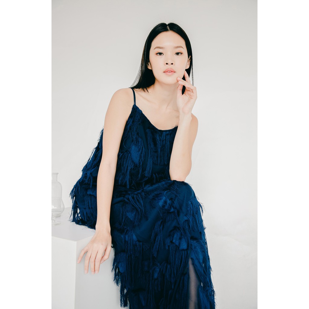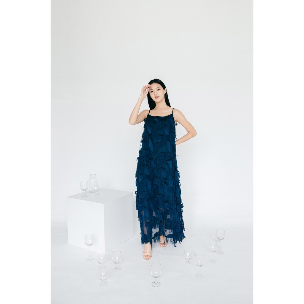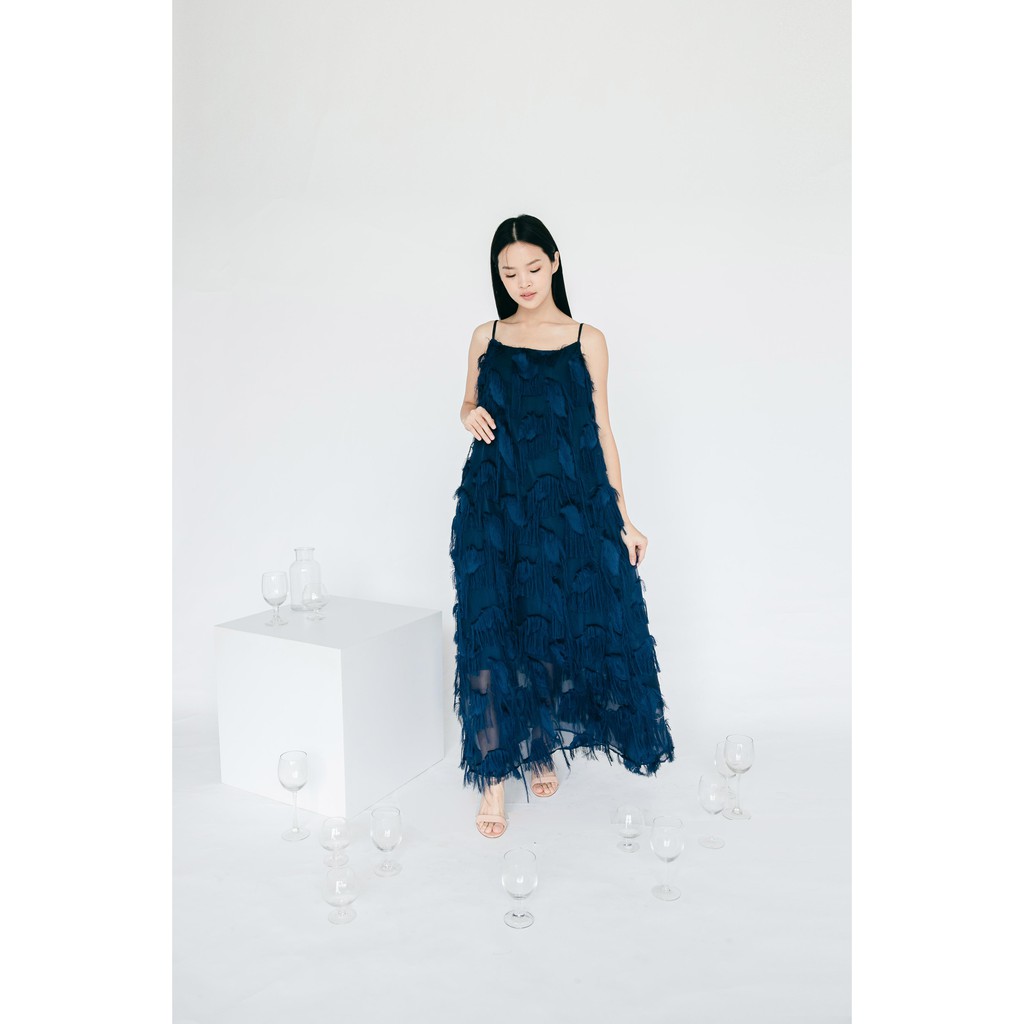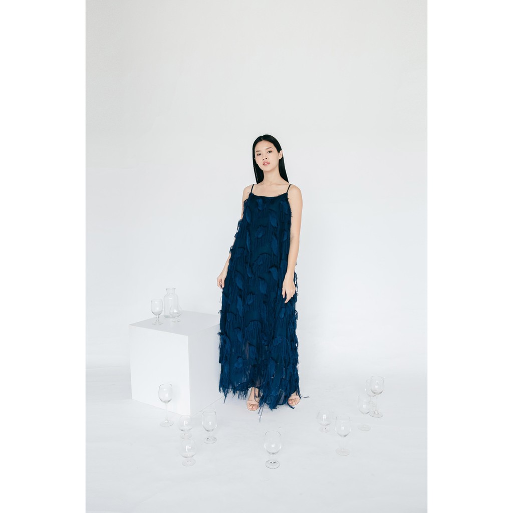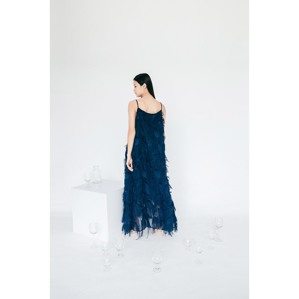 Valery Maxi Dress - Dress A-Line Bulu Navy Elegan Party Dress