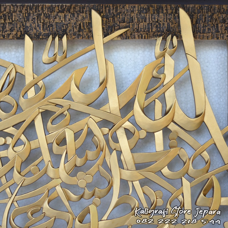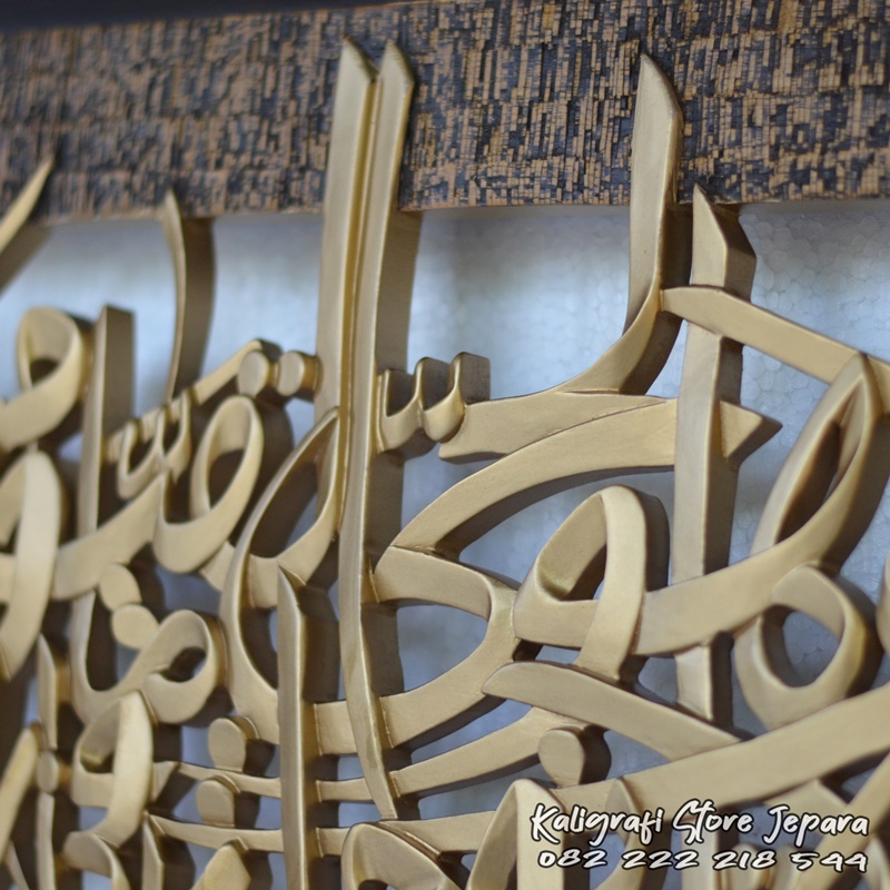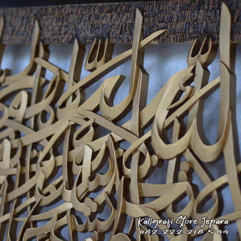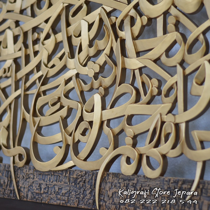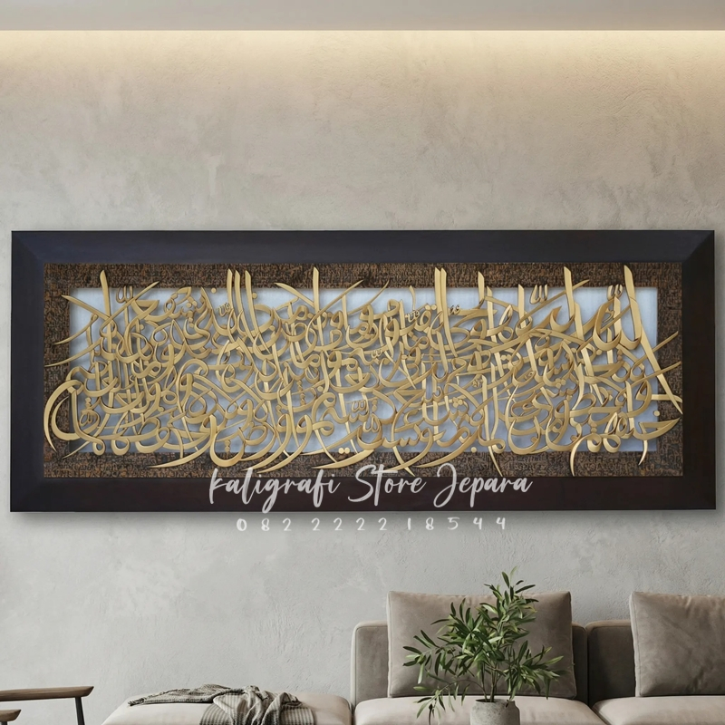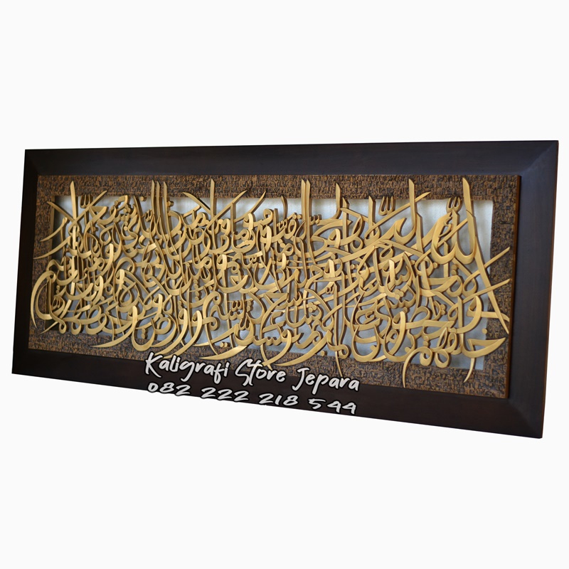 kaligrafi ayat kursi kayu jati perhutani pajangan dinding Hiasan islami minimalis 150x60 premium