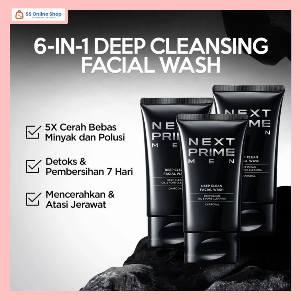 [SS ONLINE 100% ORI PAKET] NEXT PRIME MEN FACIAL WASH 100ML PAKET HEMAT 3 PCS – SABUN CUCI MUKA PRIA