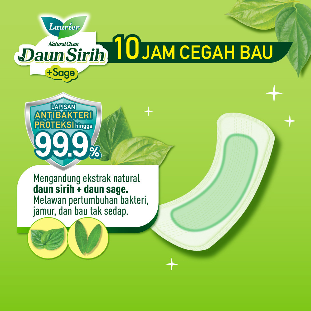 Laurier Natural Clean Pantyliner Daun Sirih Anti Bakteri Long & Wide - Bersih Alami Cegah Bau Isi 40 Buah Triple Pack