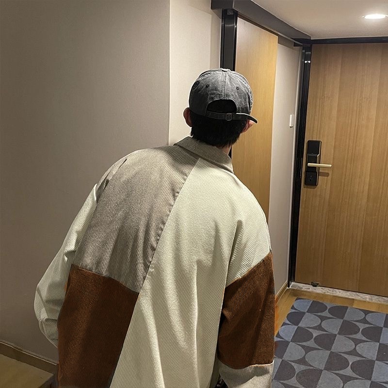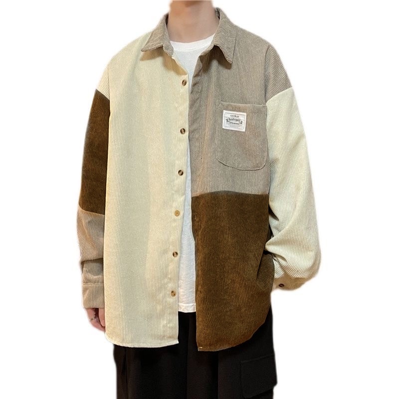 Kemeja Korduroi Retro Jepang Pria Longgar Tren Kemeja Jaket Atasan Lengan Panjang
