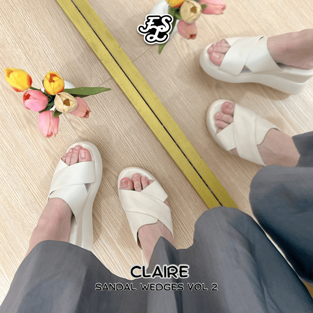 LUMMYSHOP Claire Wedges Sandal Platform Wanita Wedges Kokop Slop Sandal Kondangan Sendal Lebaran