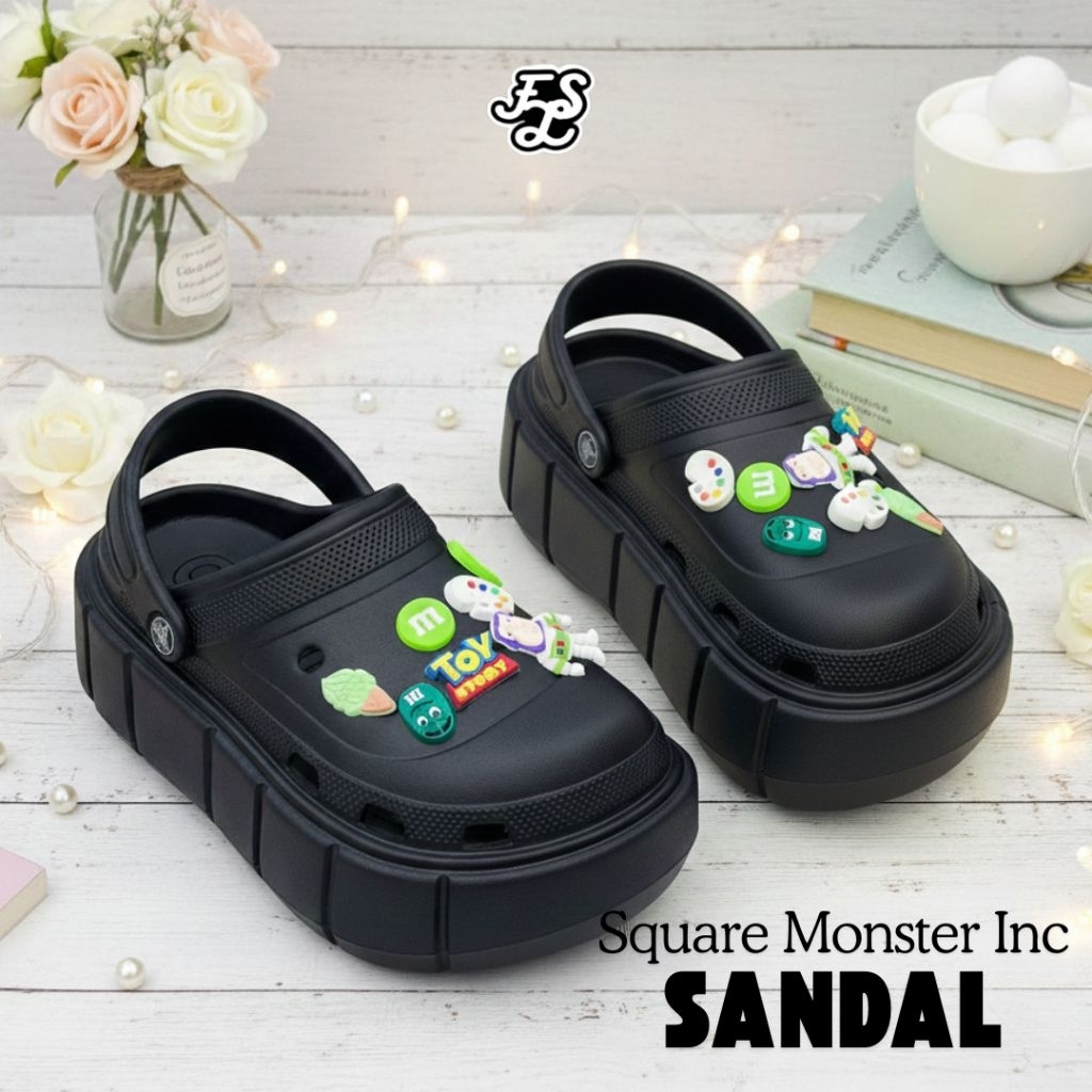 LUMMYSHOP Square Monster INC X T STORY Baim Sandals Wanita dengan Bahan Karet Premium Import