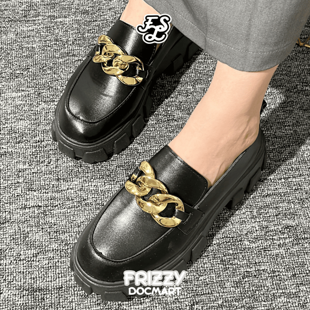 LUMMYSHOP Frizy Chain Sepatu Docmart Wanita Sepatu Formal Kerja Hitam Glossy Premium Import