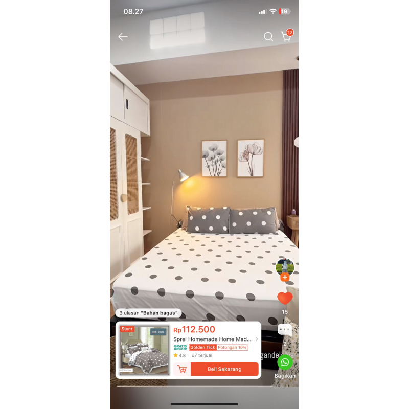 Sprei Homemade Home Made Seprei Katun Seprai Polkadot uk 180x200x30 120x200 Sarung Bantal