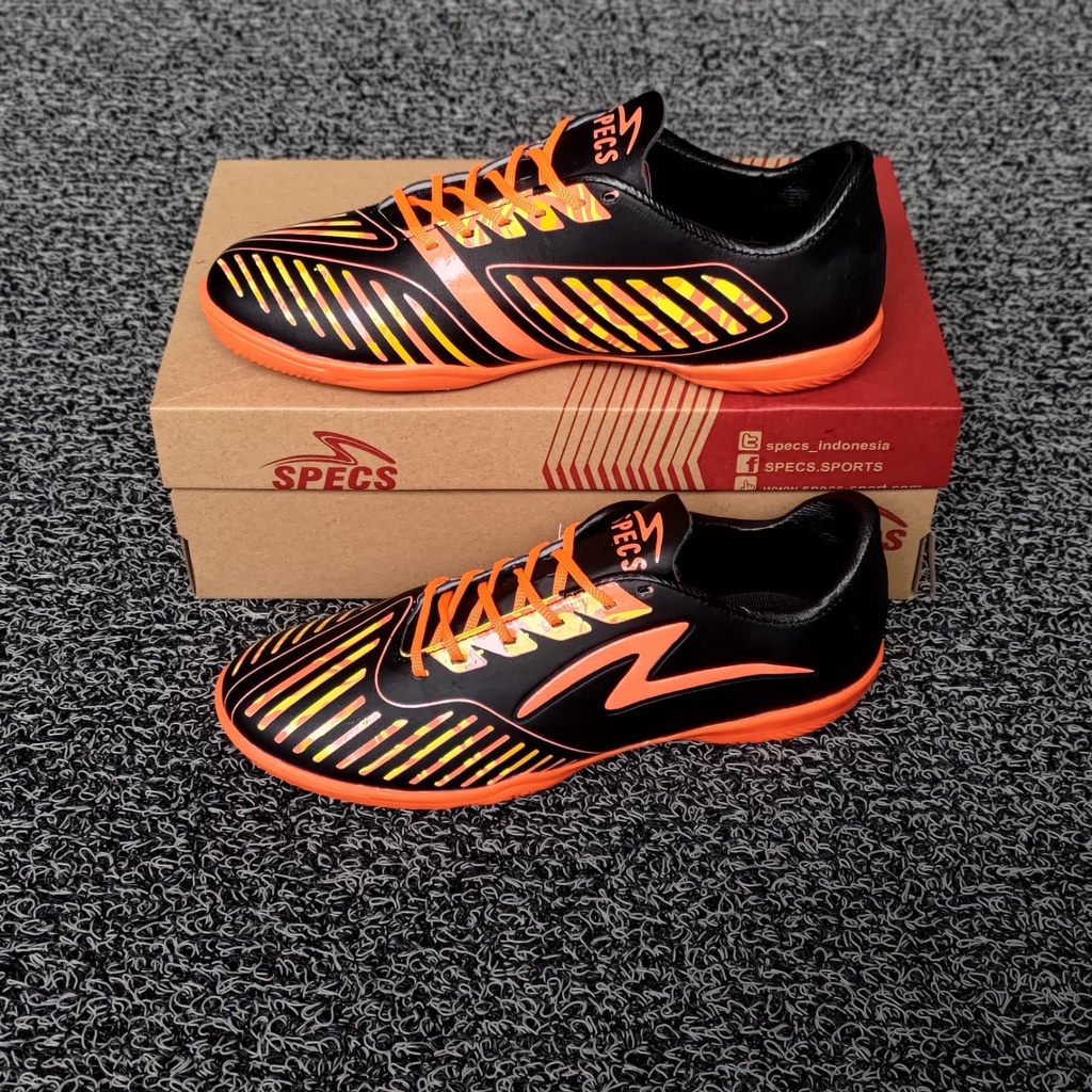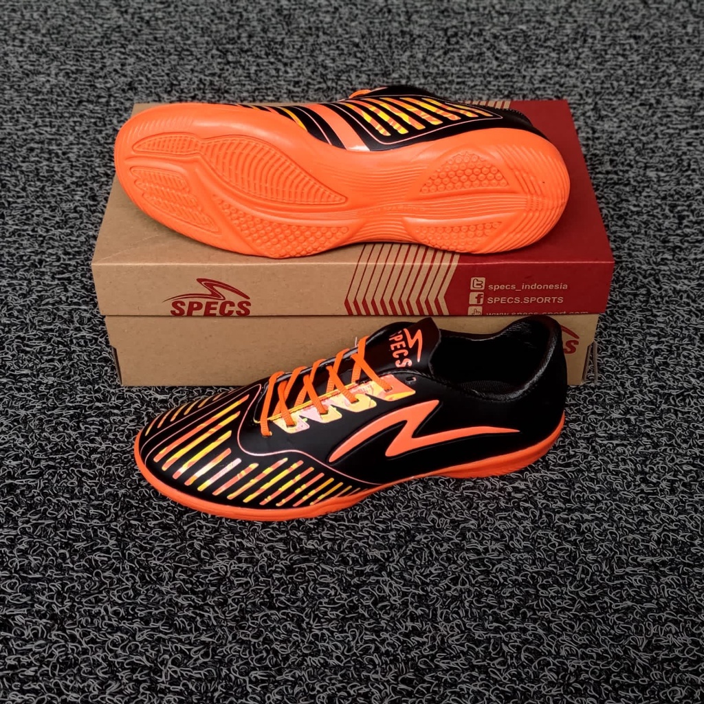 Sepatu Futsal Specs Swervo Hydra Pro In Triple Black Orange original terbaru