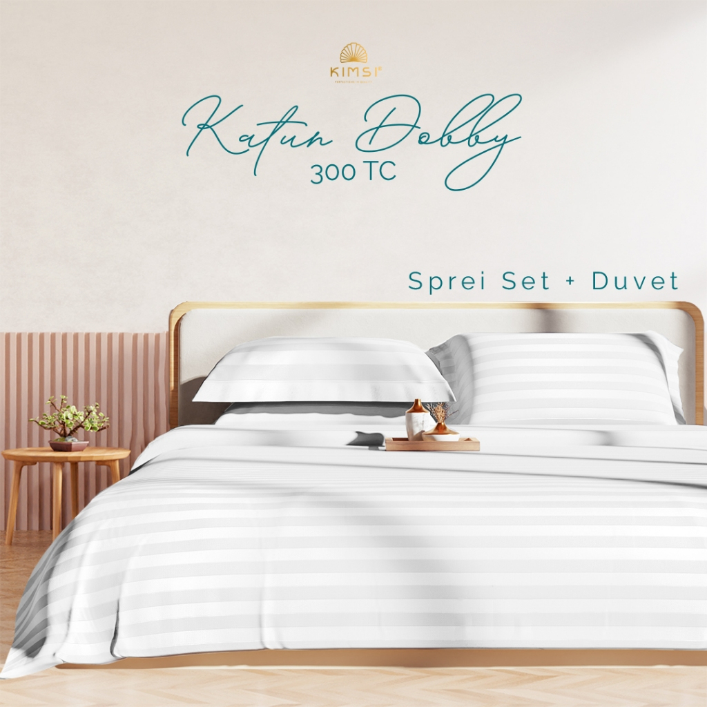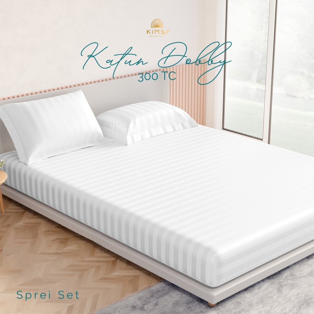 SPREI SET+BEDCOVER HOTEL PUTIH KATUN DOBBY 300TC KIMSI MURAH UK DOUBLE 180x200x40 PUTIH KUALITAS HOTEL BERBINTANG