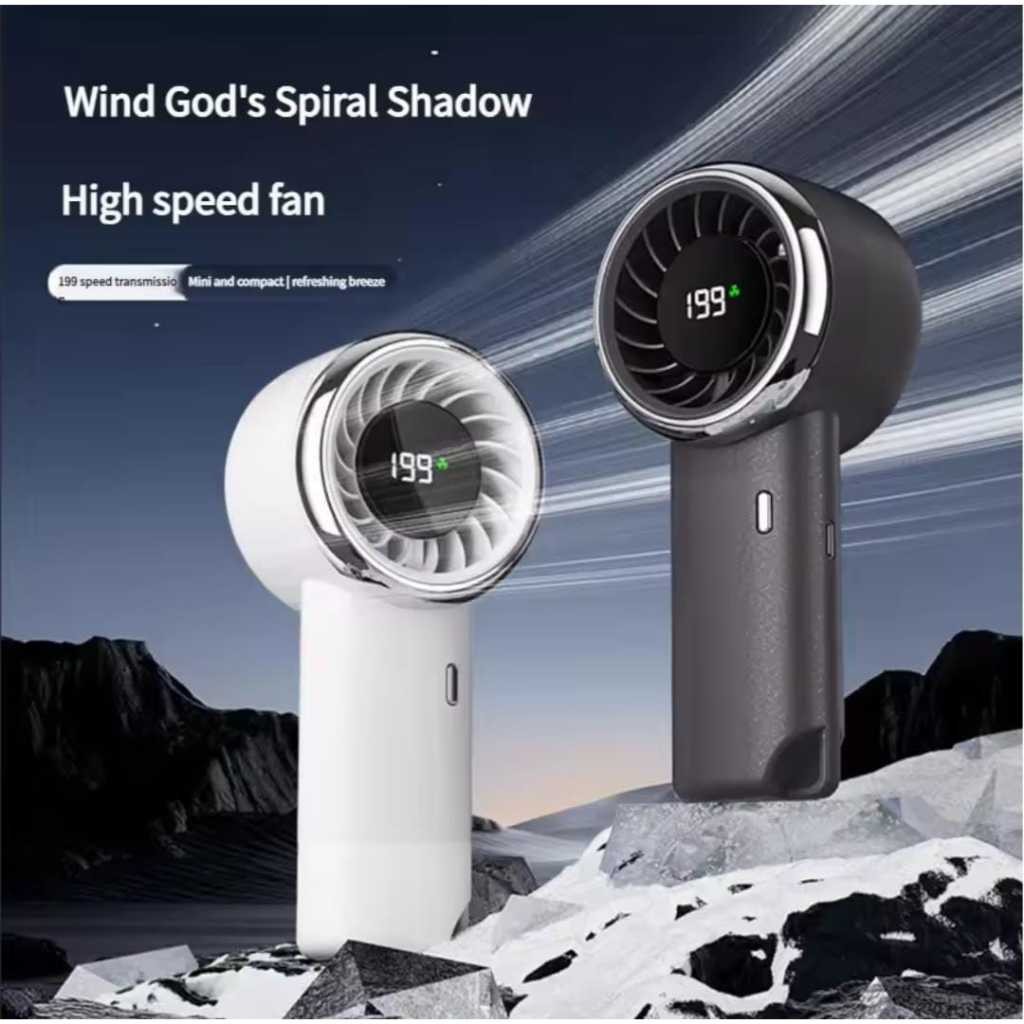 Wind God's Spiral Shadow Turbo Digital Speed 199 Gear Usb Led Kipas Angin Gengam Portable Ajustable