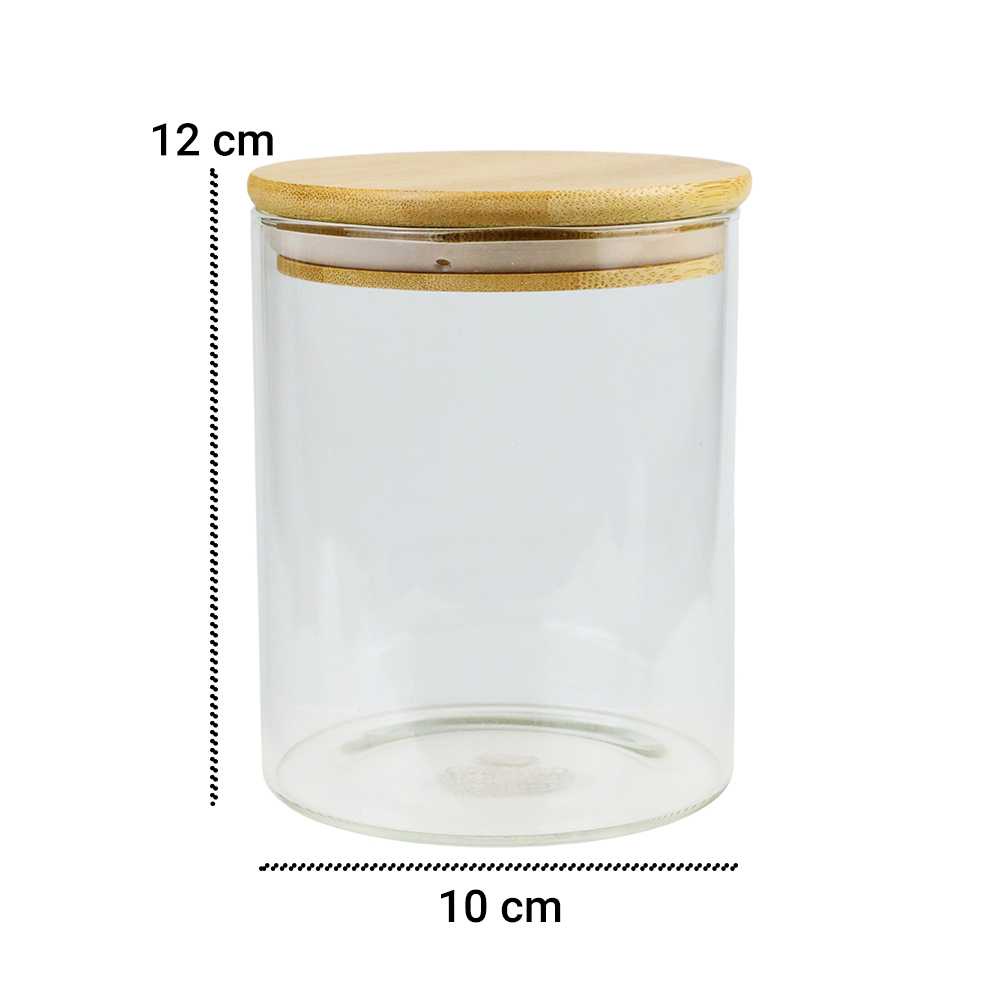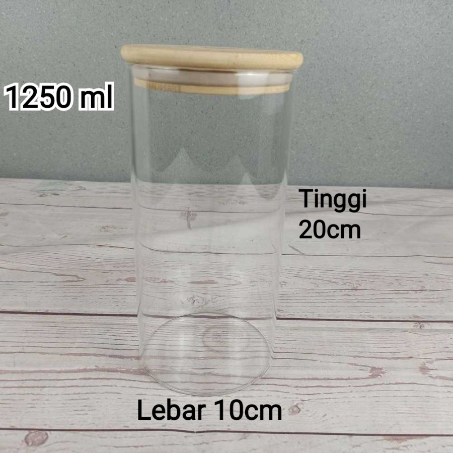 Toples Kaca Bulat Tutup Kayu Kedap Udara Toples Penyimpanan Makanan