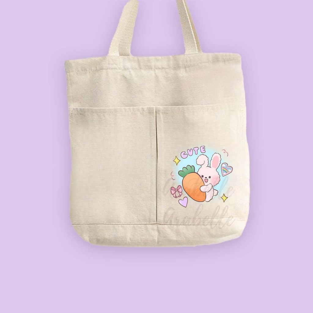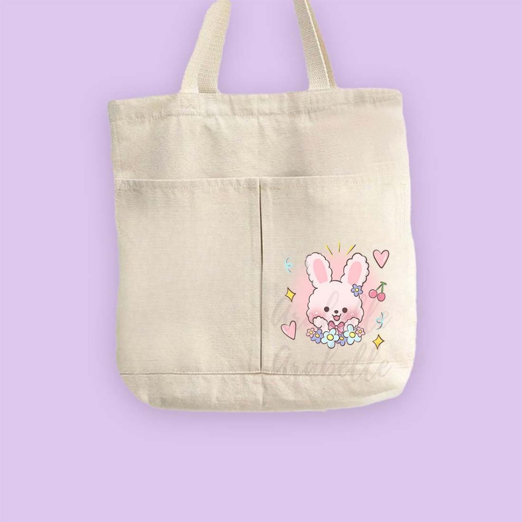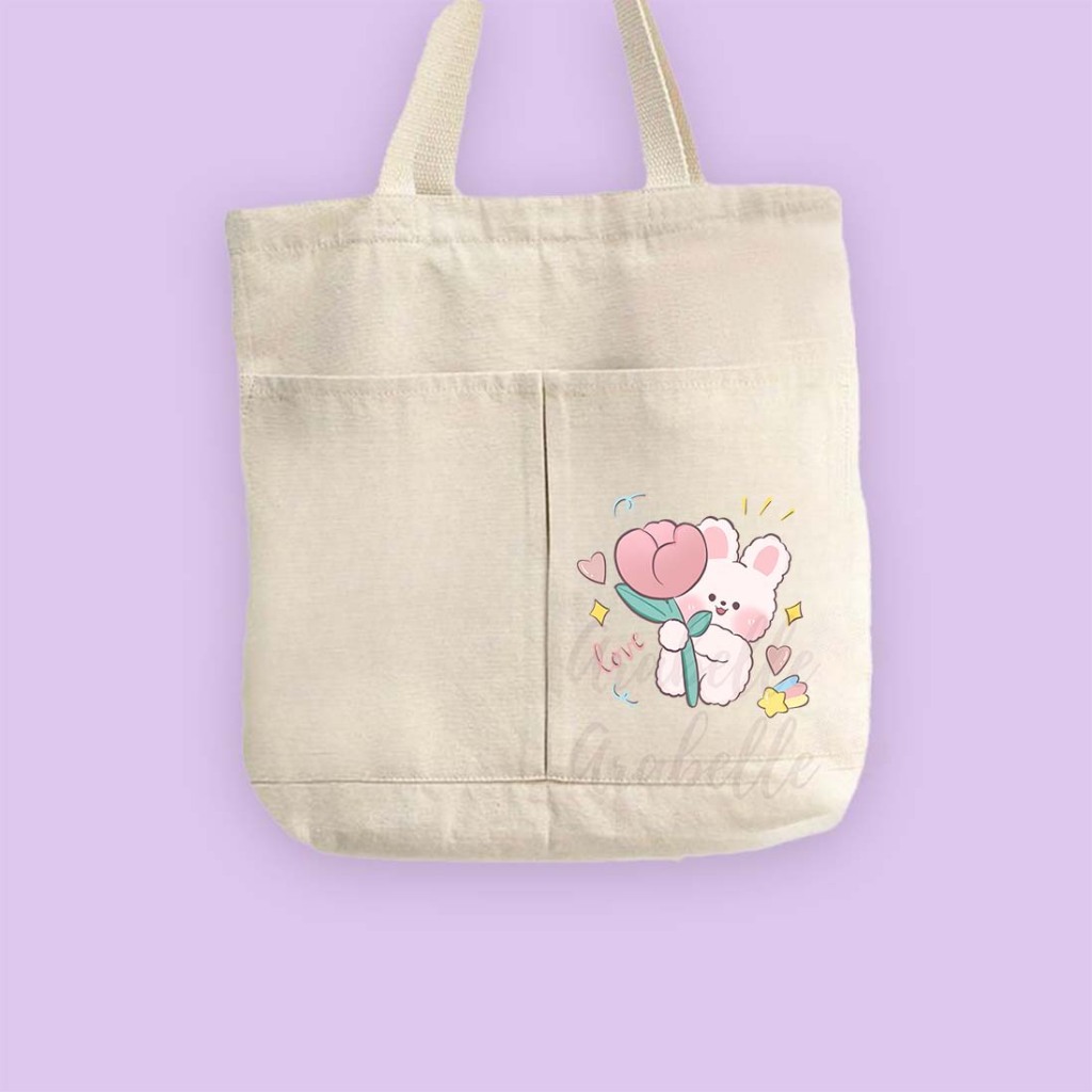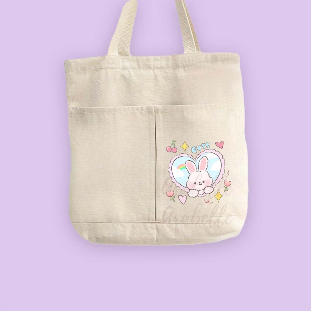 Totebag Kantong Kanvas Marsoto Berwarna Broken White Putih Bergambar Cute Bunny/Kelinci