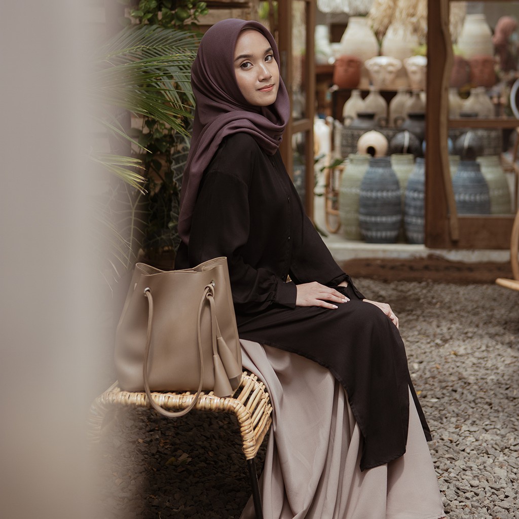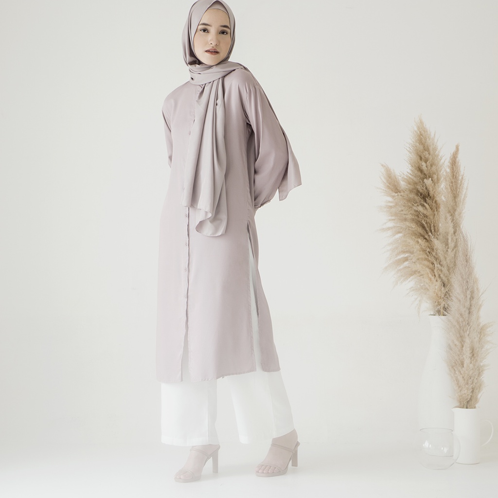 TMR01 Tunik Rayon Kancing Lengan Panjang warna hitam, coksu, putih, biru navy, lilac, coklat, biru muda