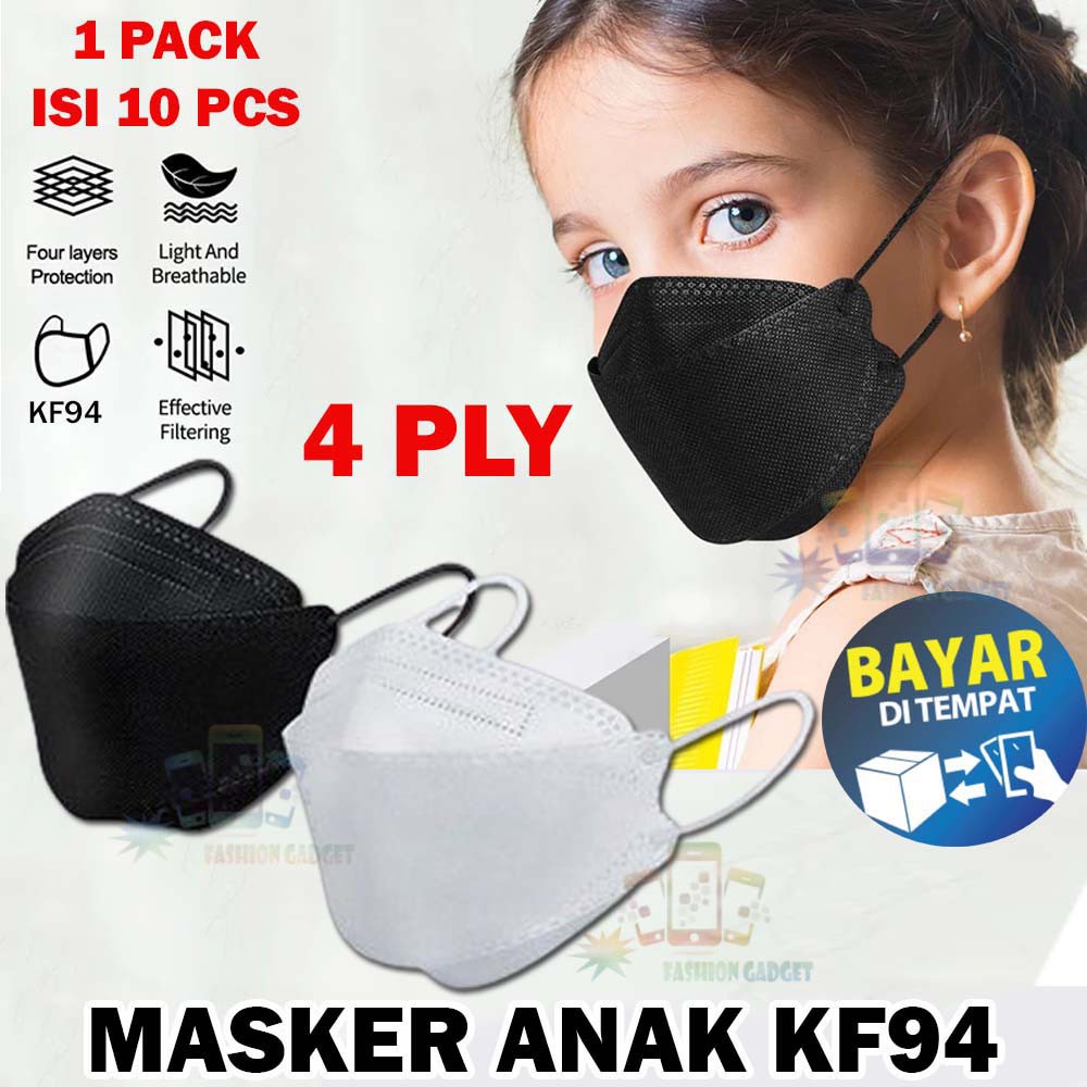 (isi 10pc) Masker Anak 4ply Model Korea Masker KF94 Evo Kids Masker Wajah Earloop Anti Virus 4 ply