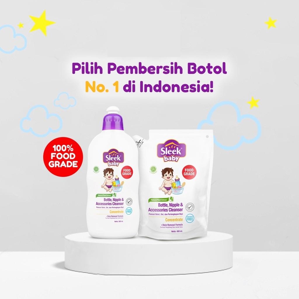 Sleek Baby Bottle, Nippple Accesories Cleanser & Sleek Laundry Refill 450ml sabun cuci sabun botol
