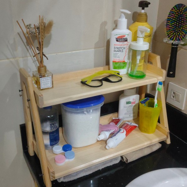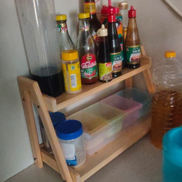 RAK BUMBU KAYU SERBAGUNA 2 SUSUN UKURAN P.45 X L.25 X T.30
