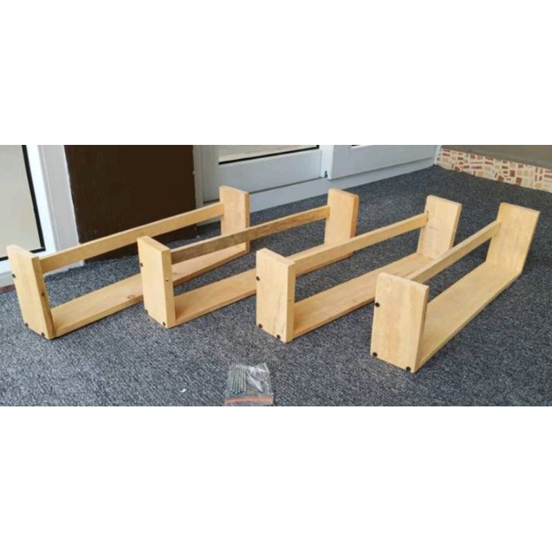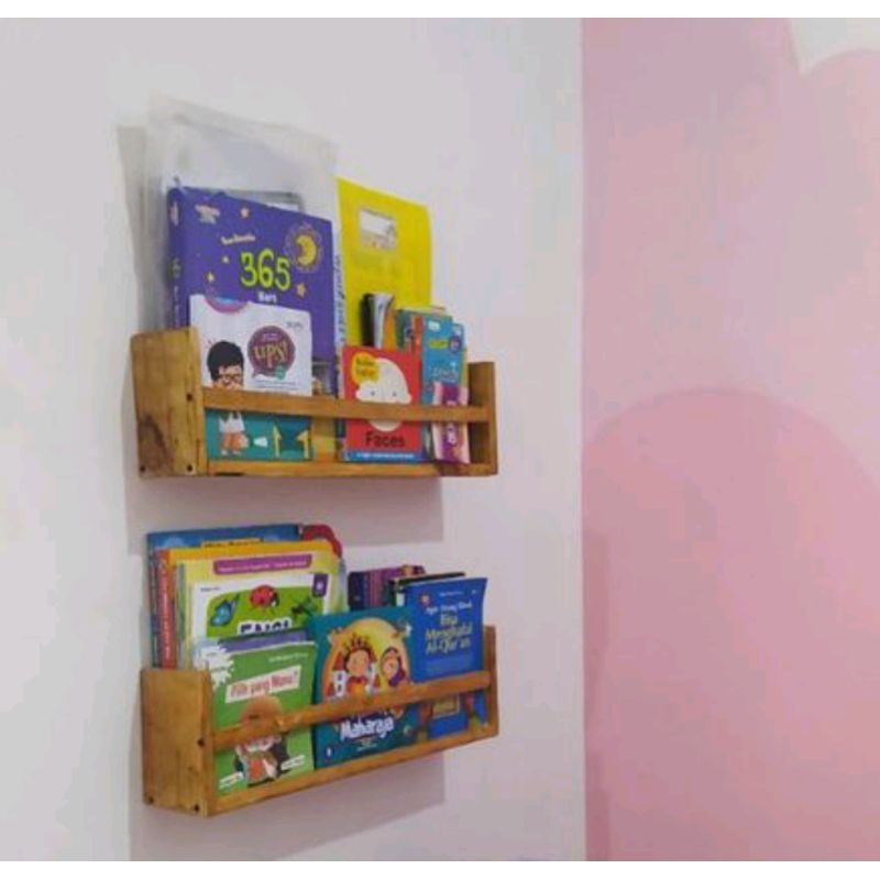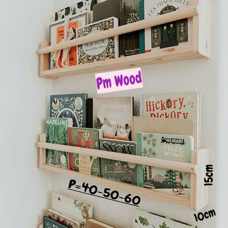Pm wood rak dinding buku anak kayu solid pinus finishing natural