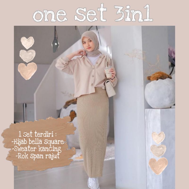 Paket ootd wanita / Setelan wanita / setelan 3in1 murah / rok knit