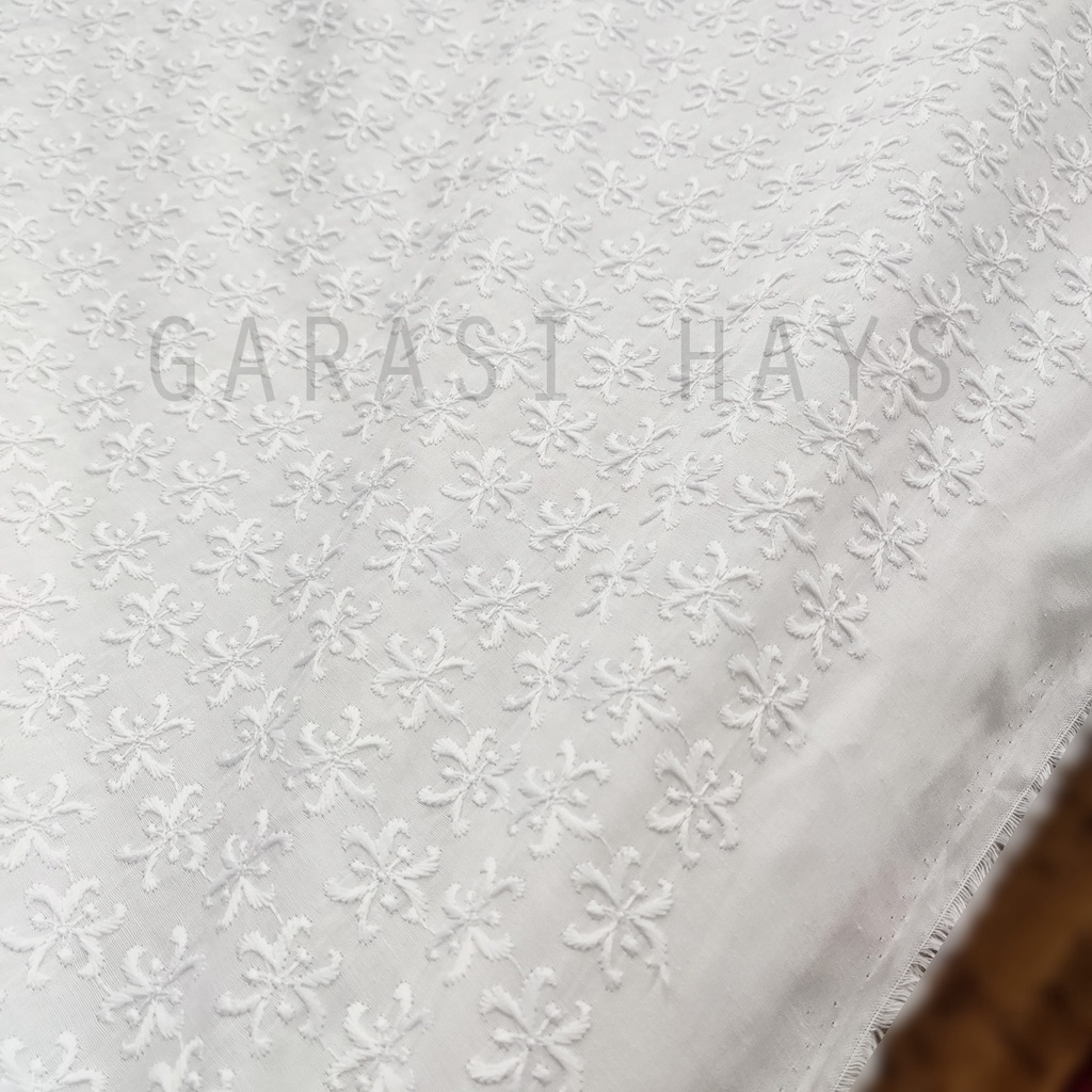 Kain Katun Bordir Putih White Cotton Embroidery Lebar 150 cm Floral 3