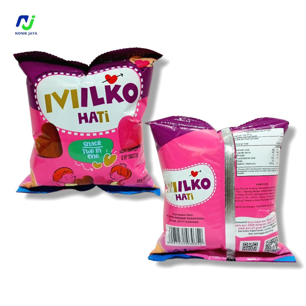 ( NEW SNACK BERHADIAH ) Milko Hati Snack Two In One Pack Isi 10 Pcs@30gr COKELAT&STRAWBERRY