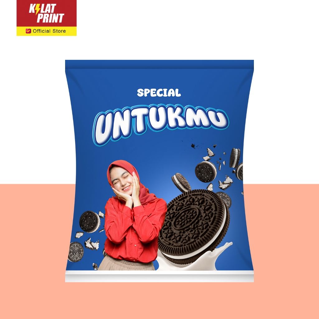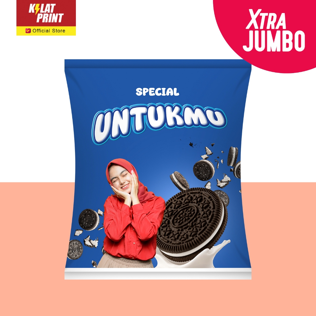 Snack Custom Foto Teks Bungkus Pouch Jumbo Ala Oreo Edition
