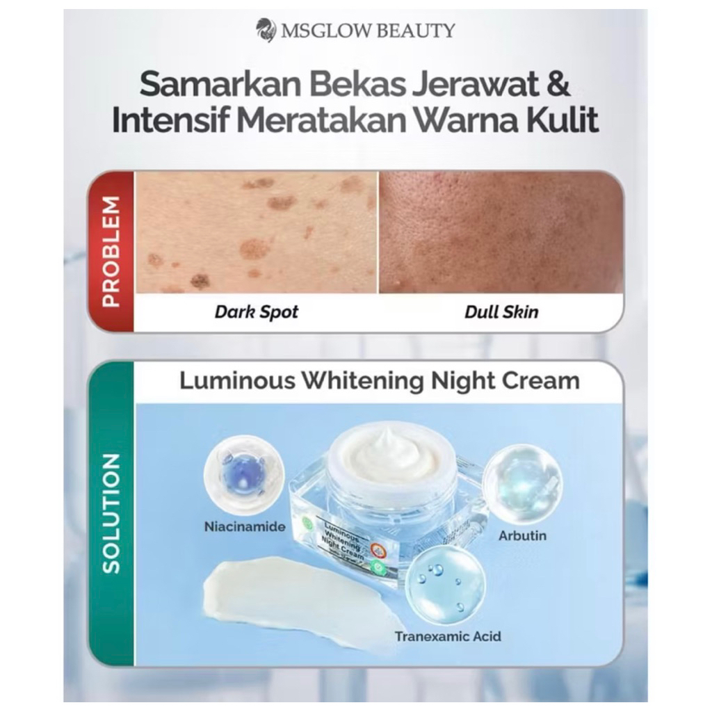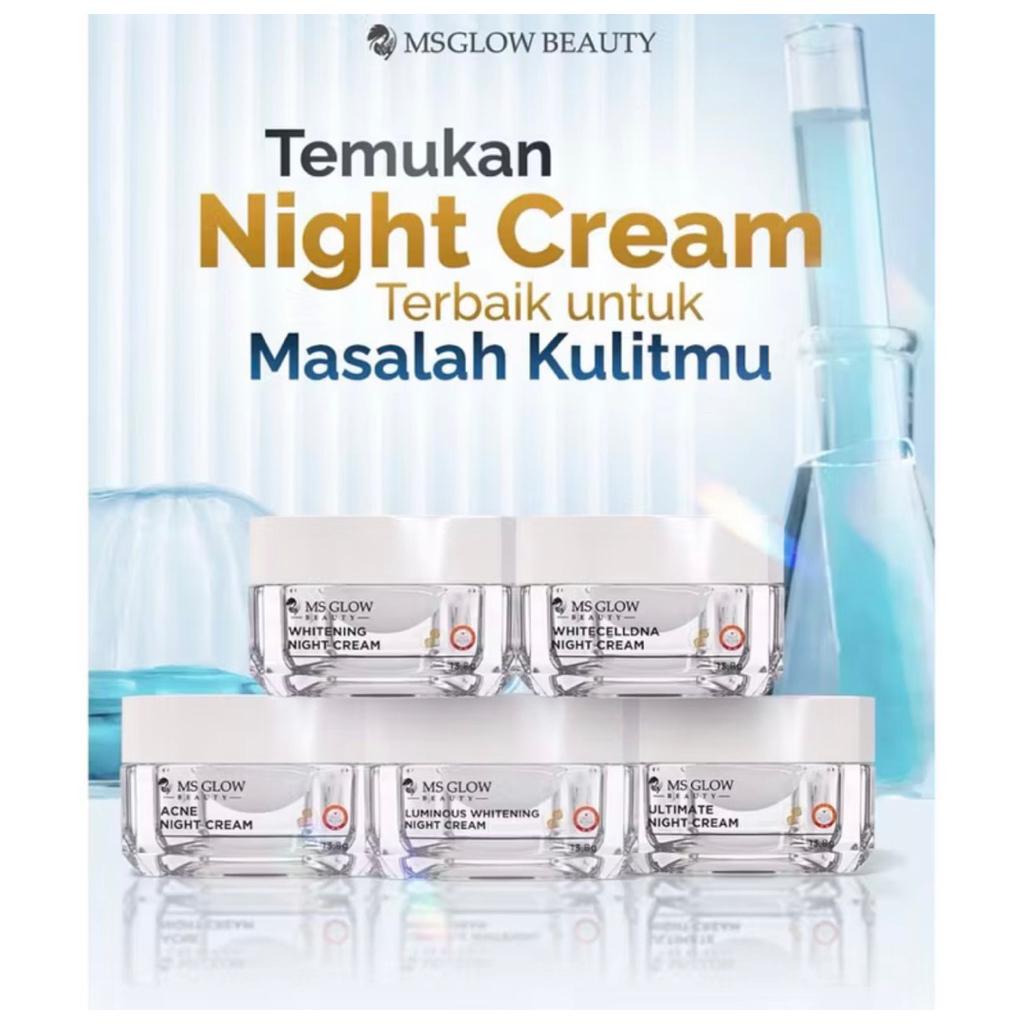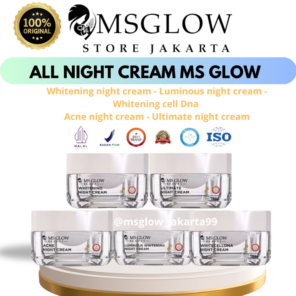 MS GLOW - NIGHT CREAM ALL VARIAN Whitening Acne Ultimate Luminous White cell dna Mengencangkan Mencerahkan Kerutan halus Menyamarkan Noda Hitam Menyembuhkan jerawat Niacinamide 12Gr