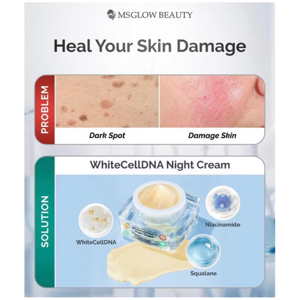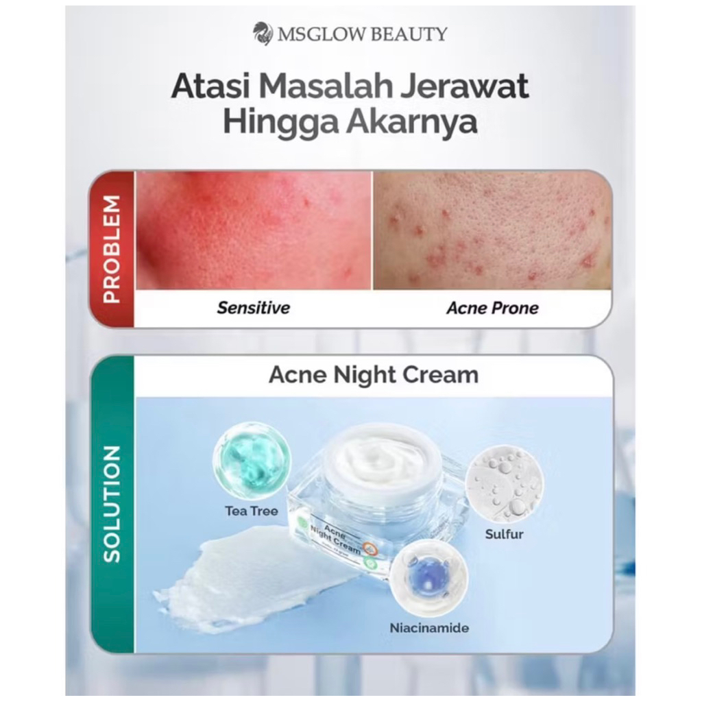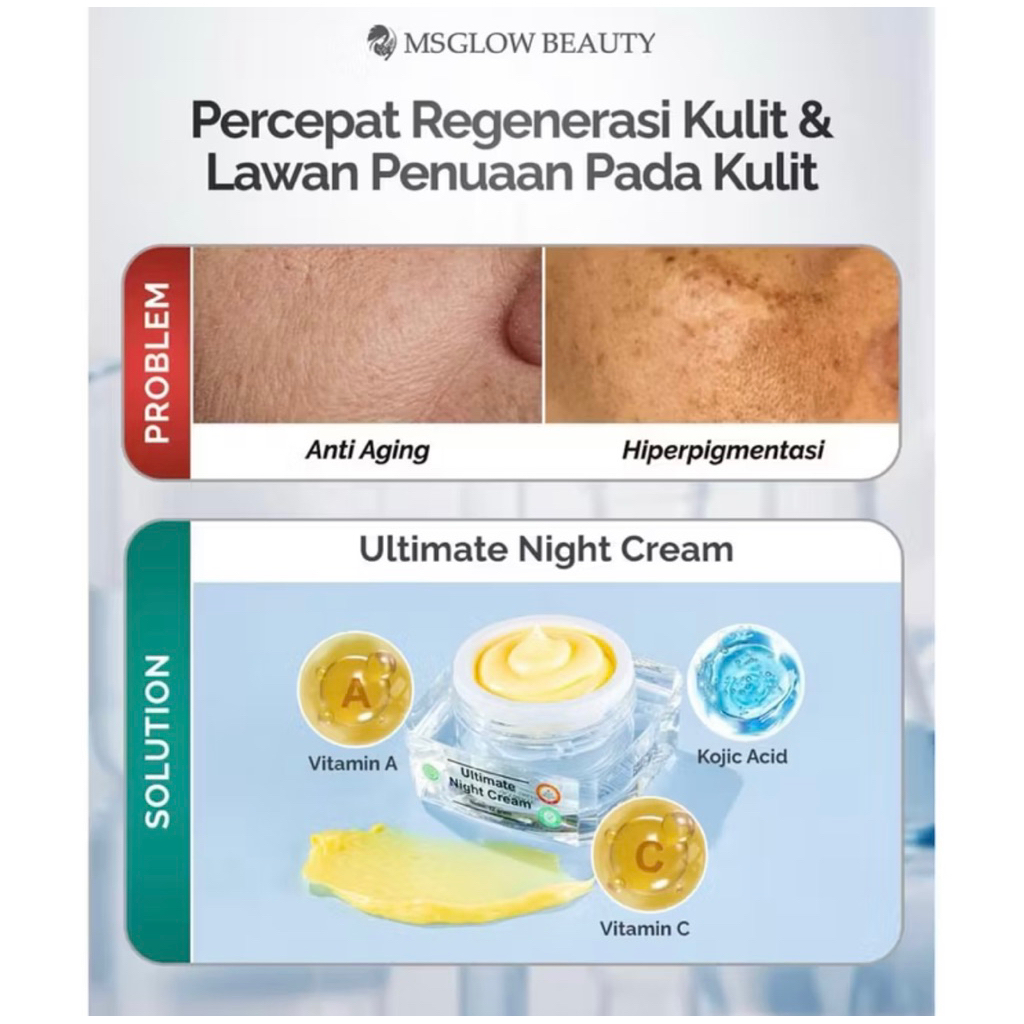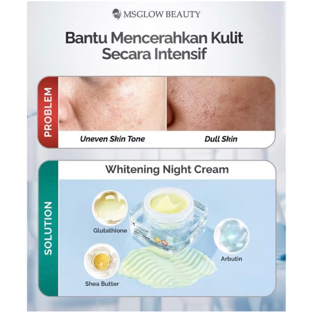 MS GLOW - NIGHT CREAM ALL VARIAN Whitening Acne Ultimate Luminous White cell dna Mengencangkan Mencerahkan Kerutan halus Menyamarkan Noda Hitam Menyembuhkan jerawat Niacinamide 12Gr