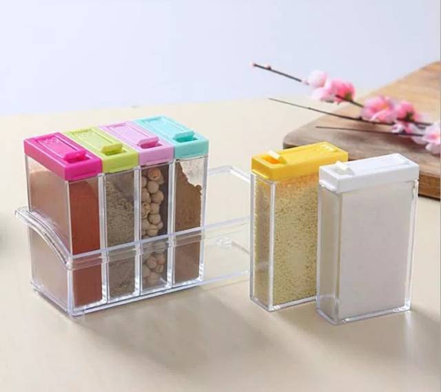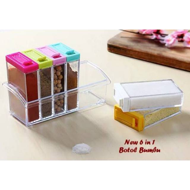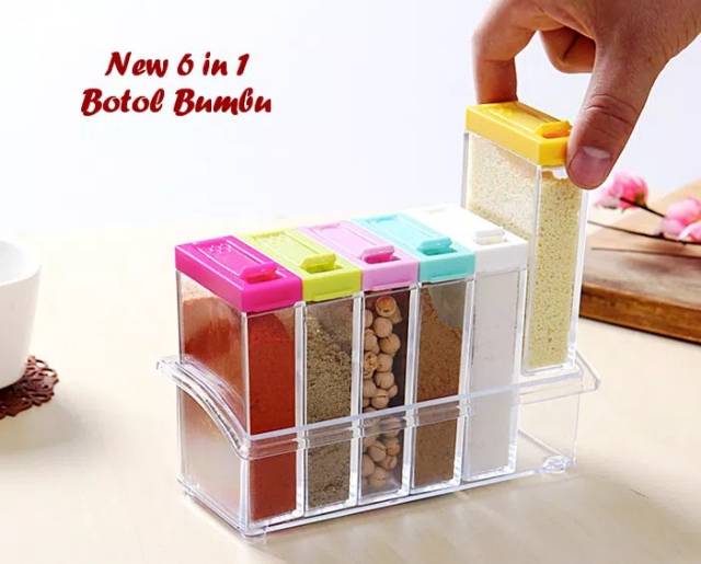 Tempat bumbu dapur 6 in 1 set spice rack holder kitchen botol bottle garam salt sugar gula cabe lada