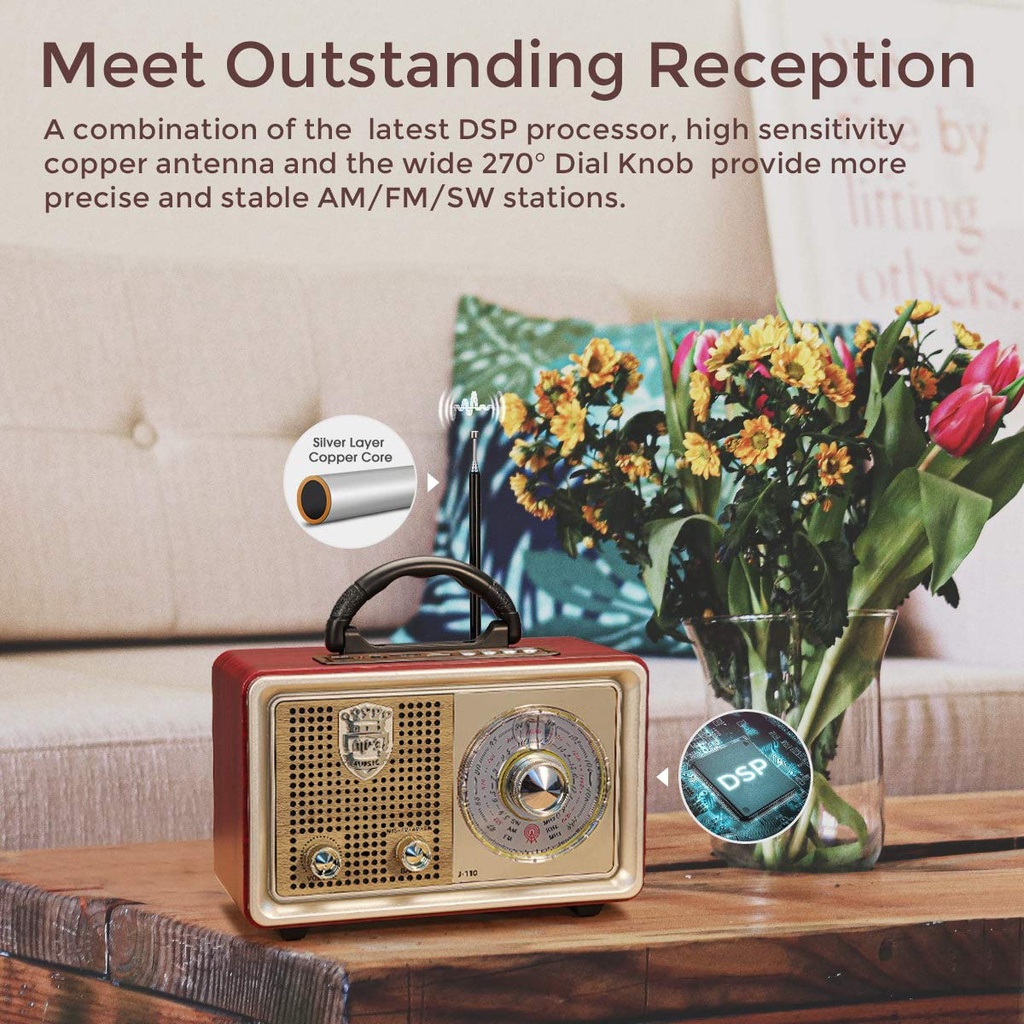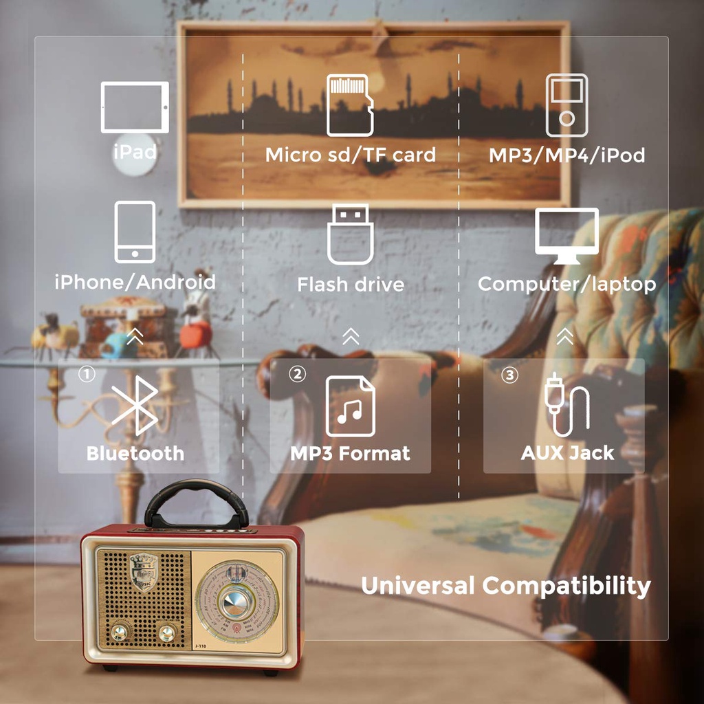 Radio Portabel 110BTS Retro FM/AM/SW Radio Speaker System dengan BT USB TF Card Player 100% ORI
