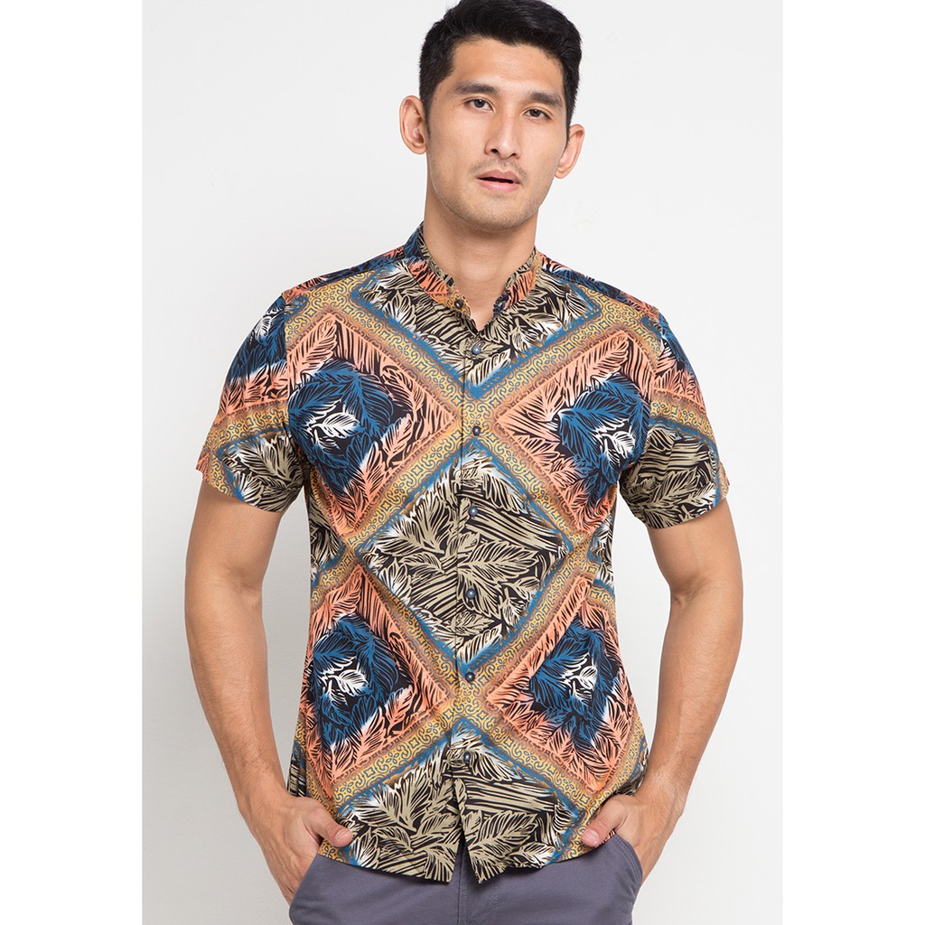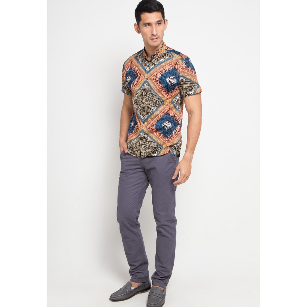 MOC Kemeja Koko Lengan Pendek Pria Slim Fit JUNGLE-OLIVE