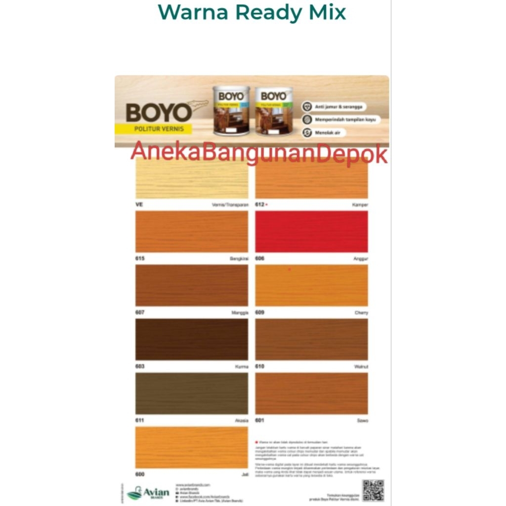 BOYO Politur & Vernis Kayu 0,5 liter - AVIAN Brands