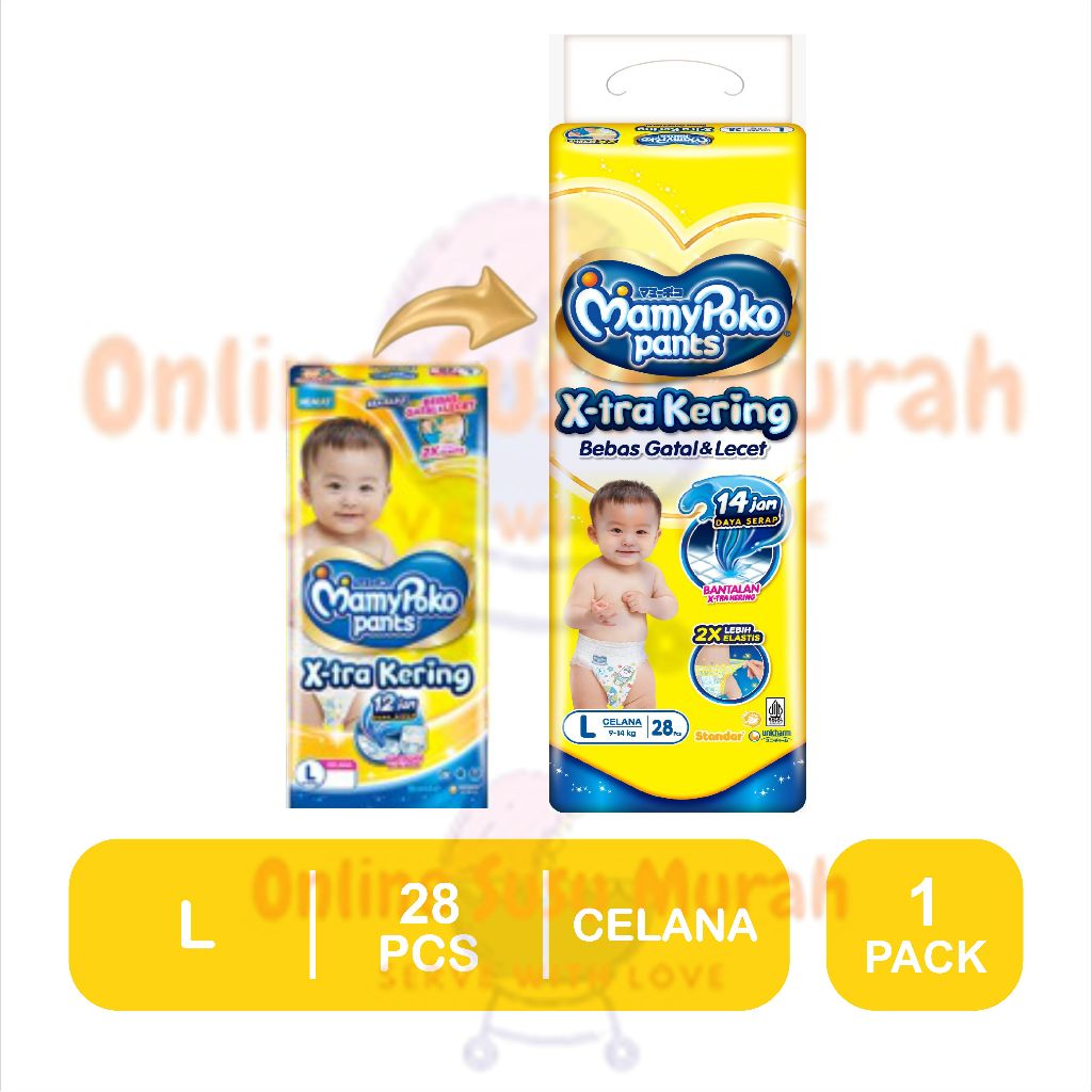 MAMYPOKO PANTS XTRA KERING S 38 M 32 L28 XL 26 XXL 24 NBS 44 TAPE S38 M32 L28 XL26 XXL24 EXTRA PPKS