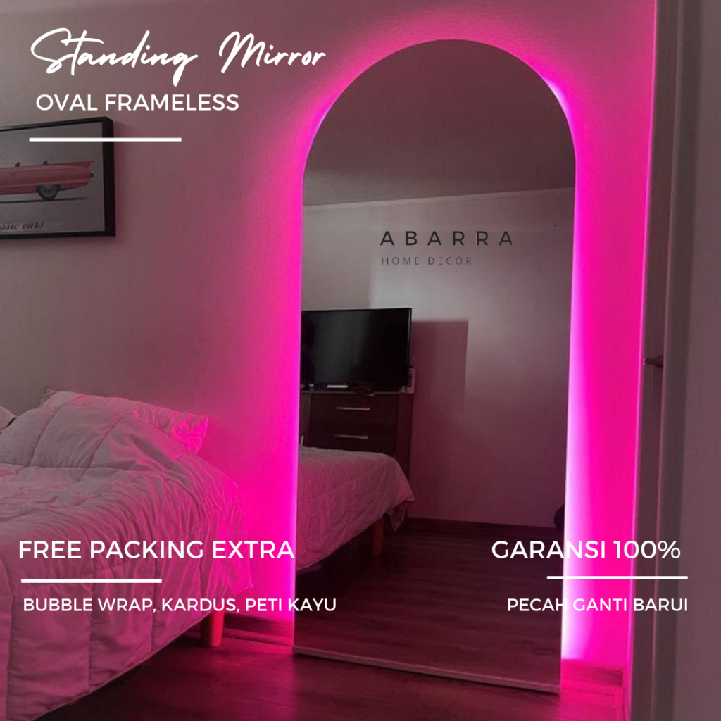 STANDING MIRROR OVAL FRAMELES FULL BODY ( HARGA SUDAH PACKING PETI KAYU & ORDER WAJIB BACA DESKRIPSI )