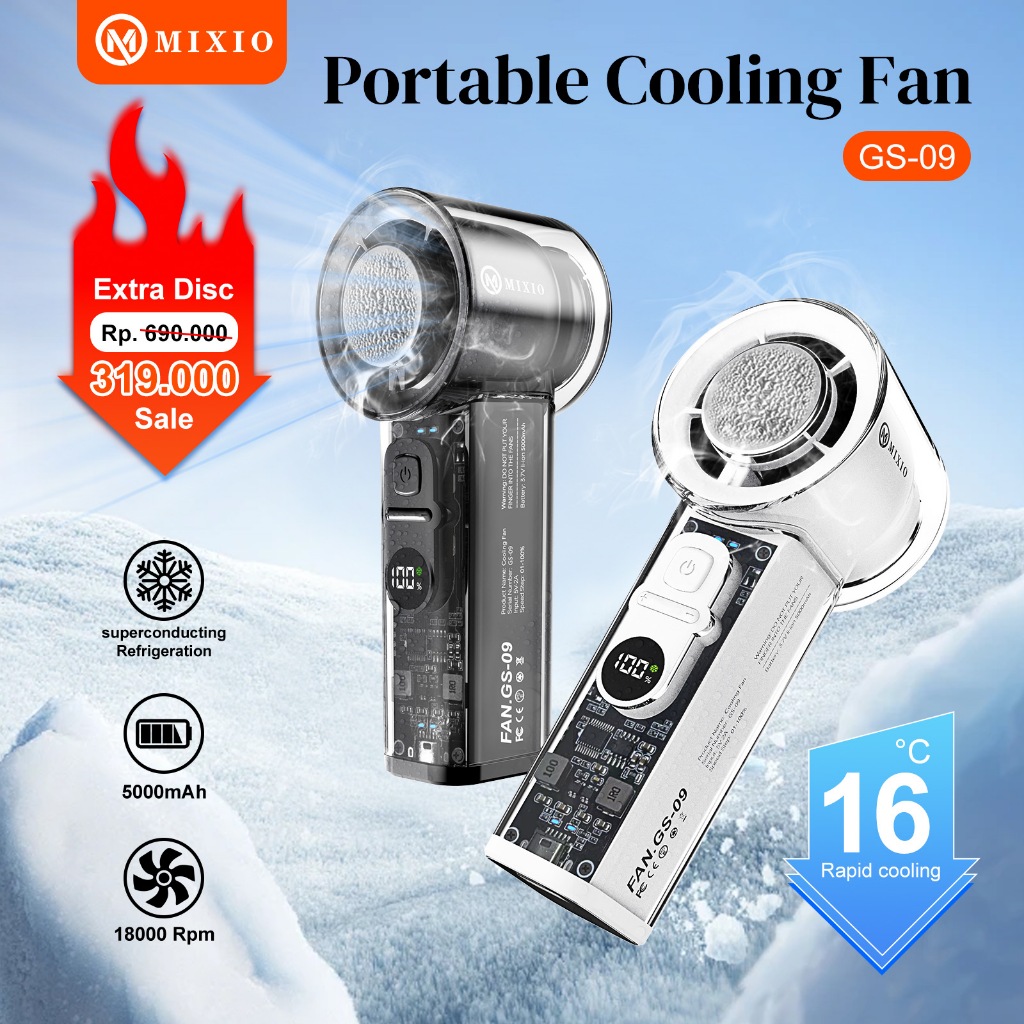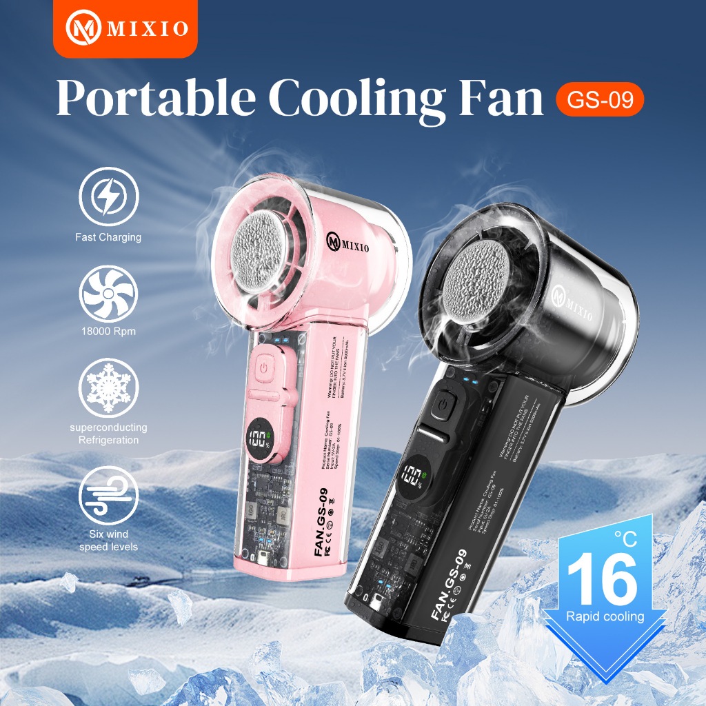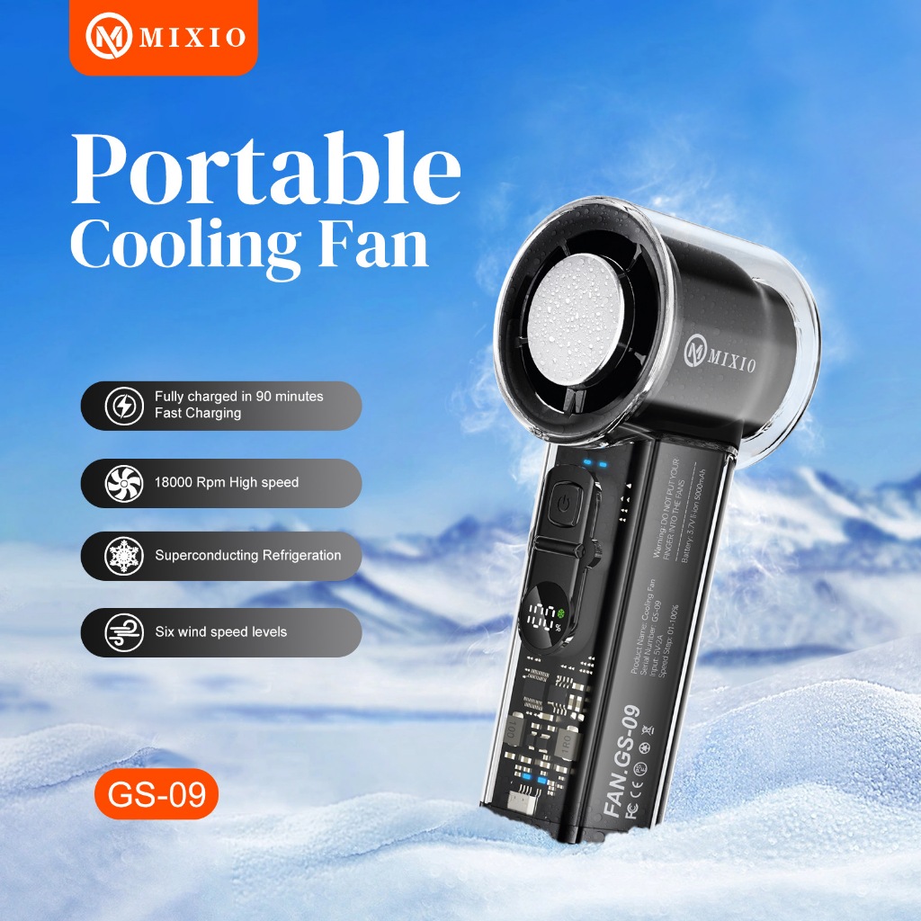 MIXIO GS-09 Transparant AC Cooling Fan Portable High Speed Kipas Angin Turbo Portable 18000Rpm Es Pendingin 5000Mah