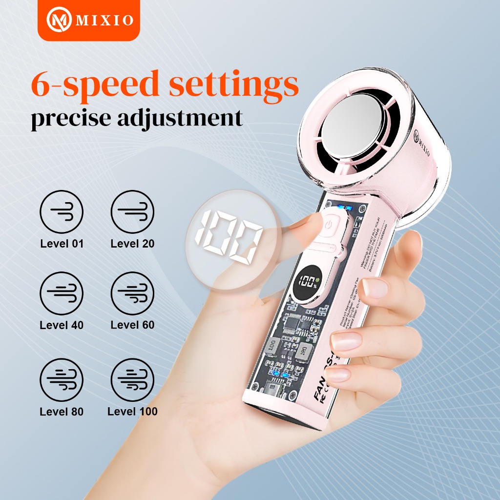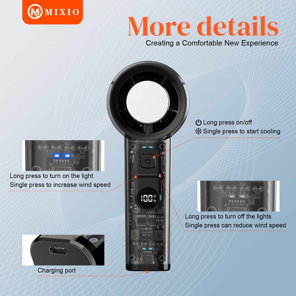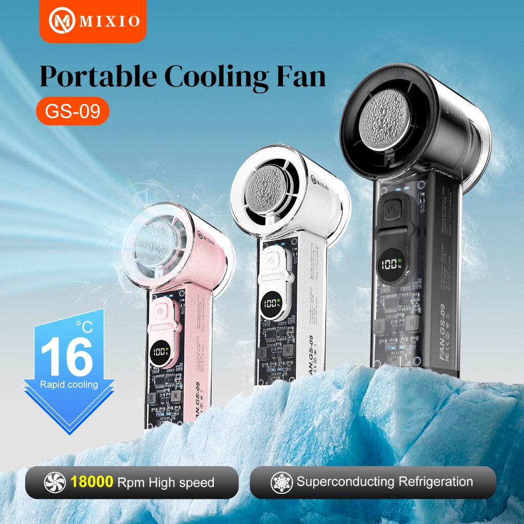 MIXIO GS-09 Transparant AC Cooling Fan Portable High Speed Kipas Angin Turbo Portable 18000Rpm Es Pendingin 5000Mah