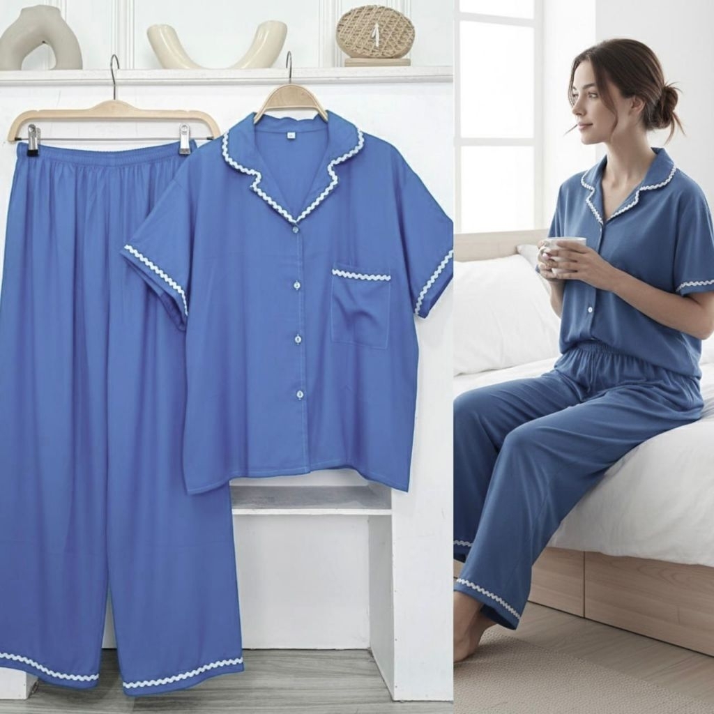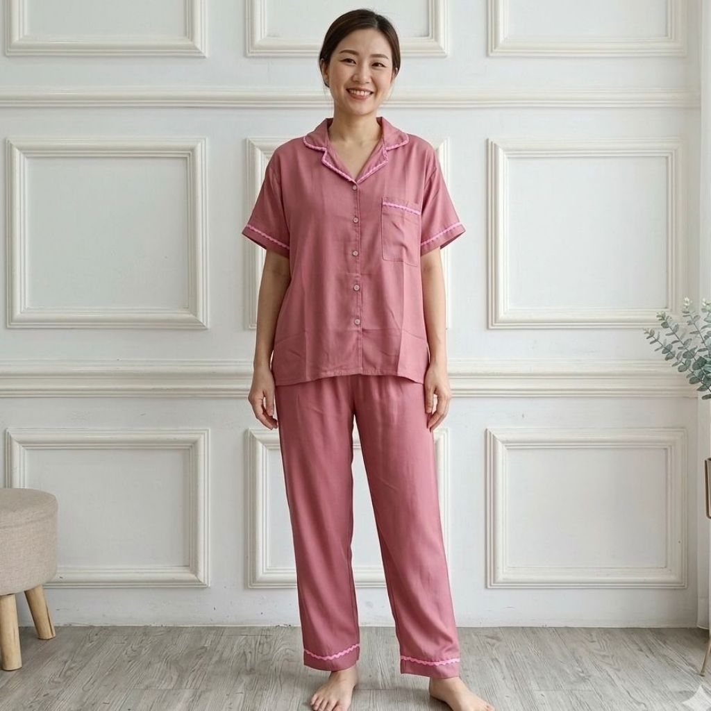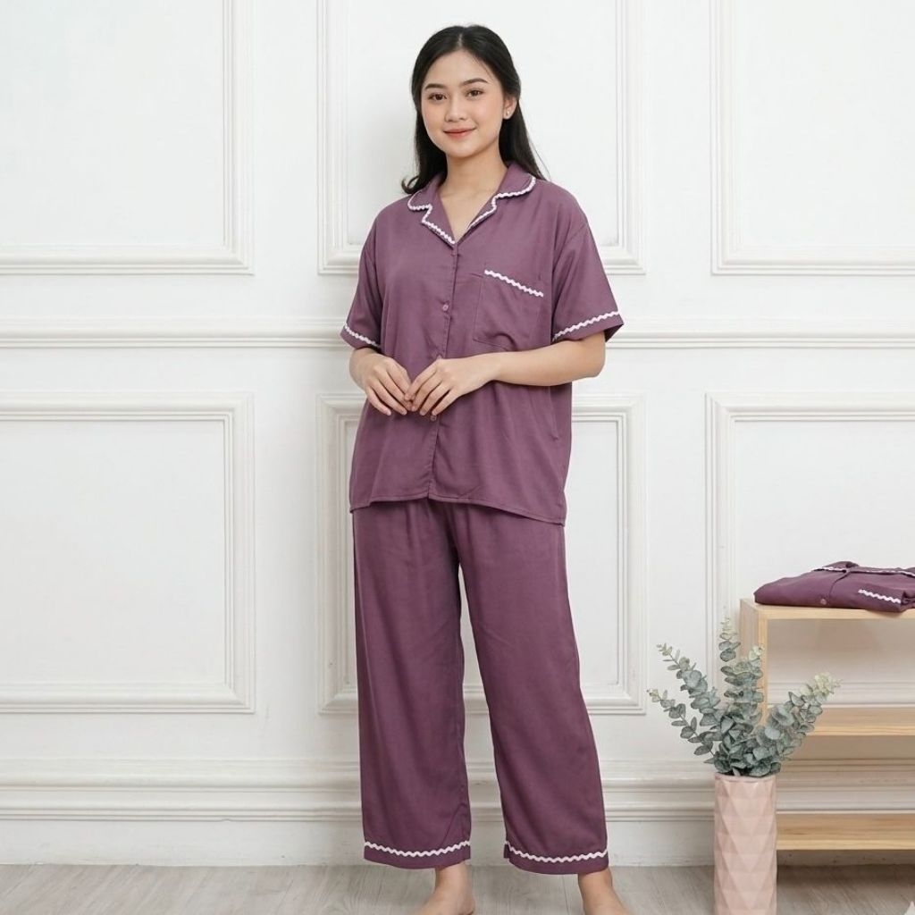 SET ZIZI PIYAMA POLOS BUSUI RENDA RAYON PREMIUM BAJU TIDUR WANITA JUMBO