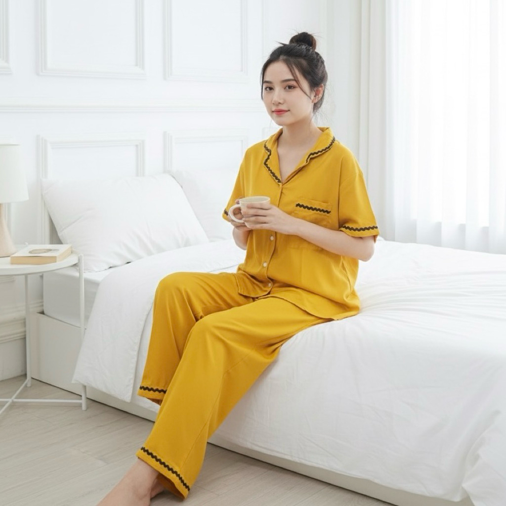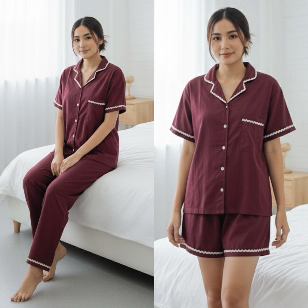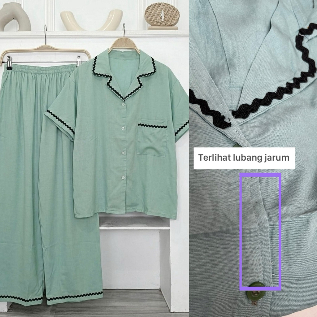 SET ZIZI PIYAMA POLOS BUSUI RENDA RAYON PREMIUM BAJU TIDUR WANITA JUMBO