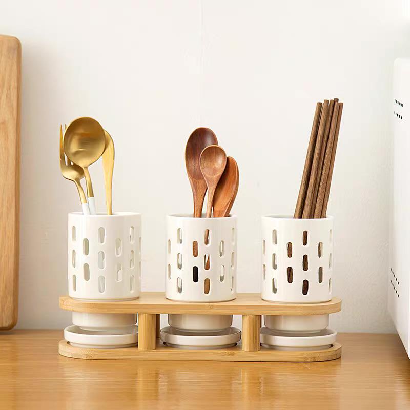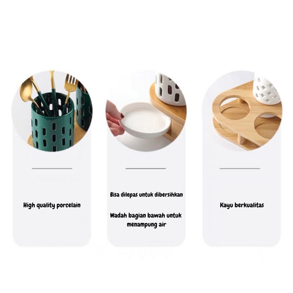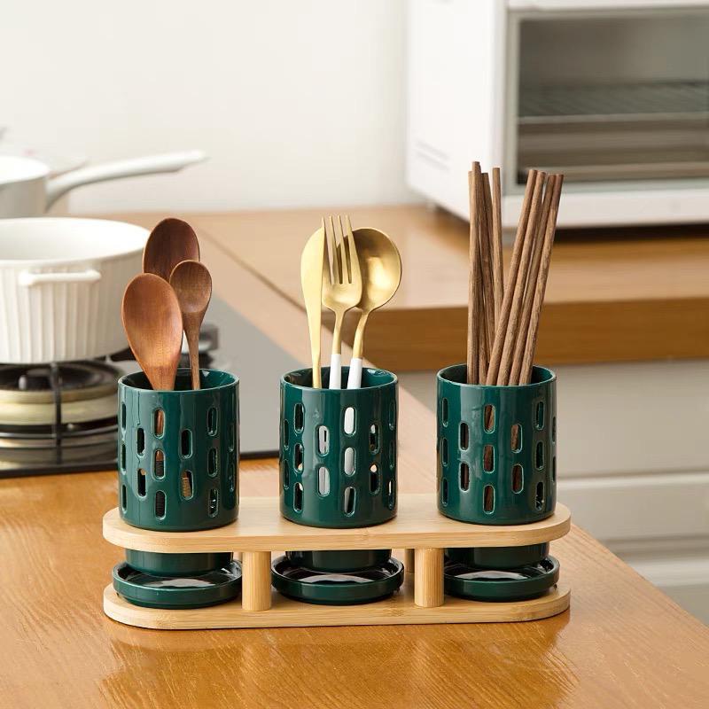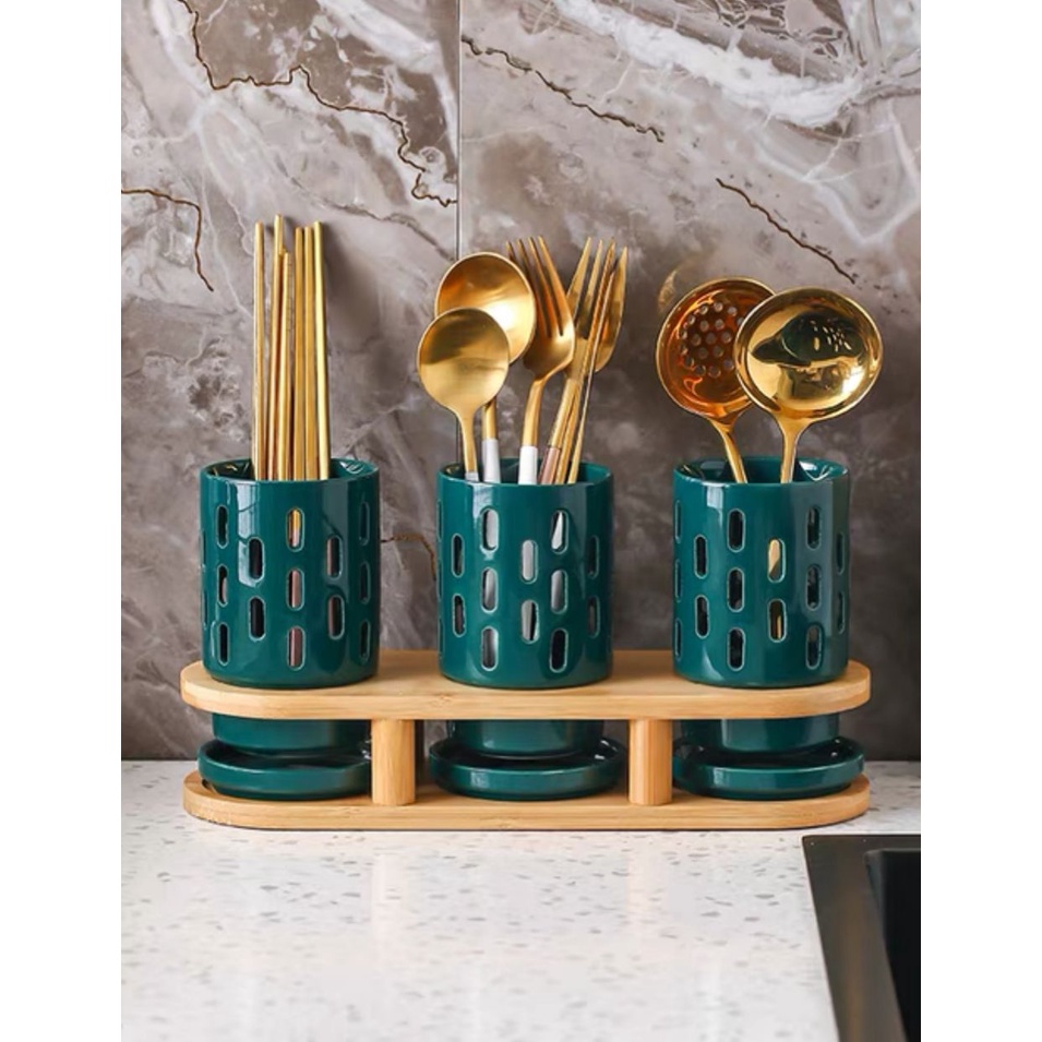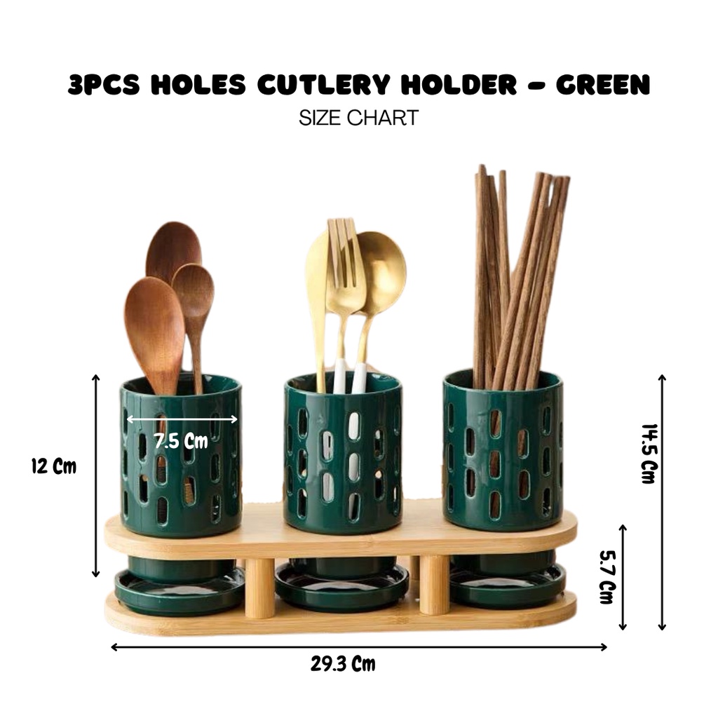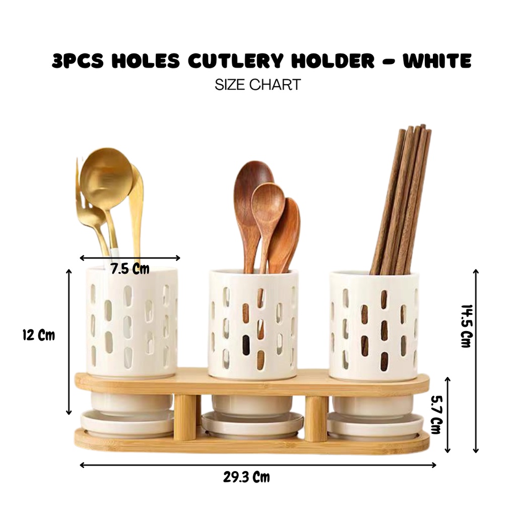 HIYURI 3Pcs Holes cutlery holder/tempat sendok garpu/tempat penyimpanan alat makan
